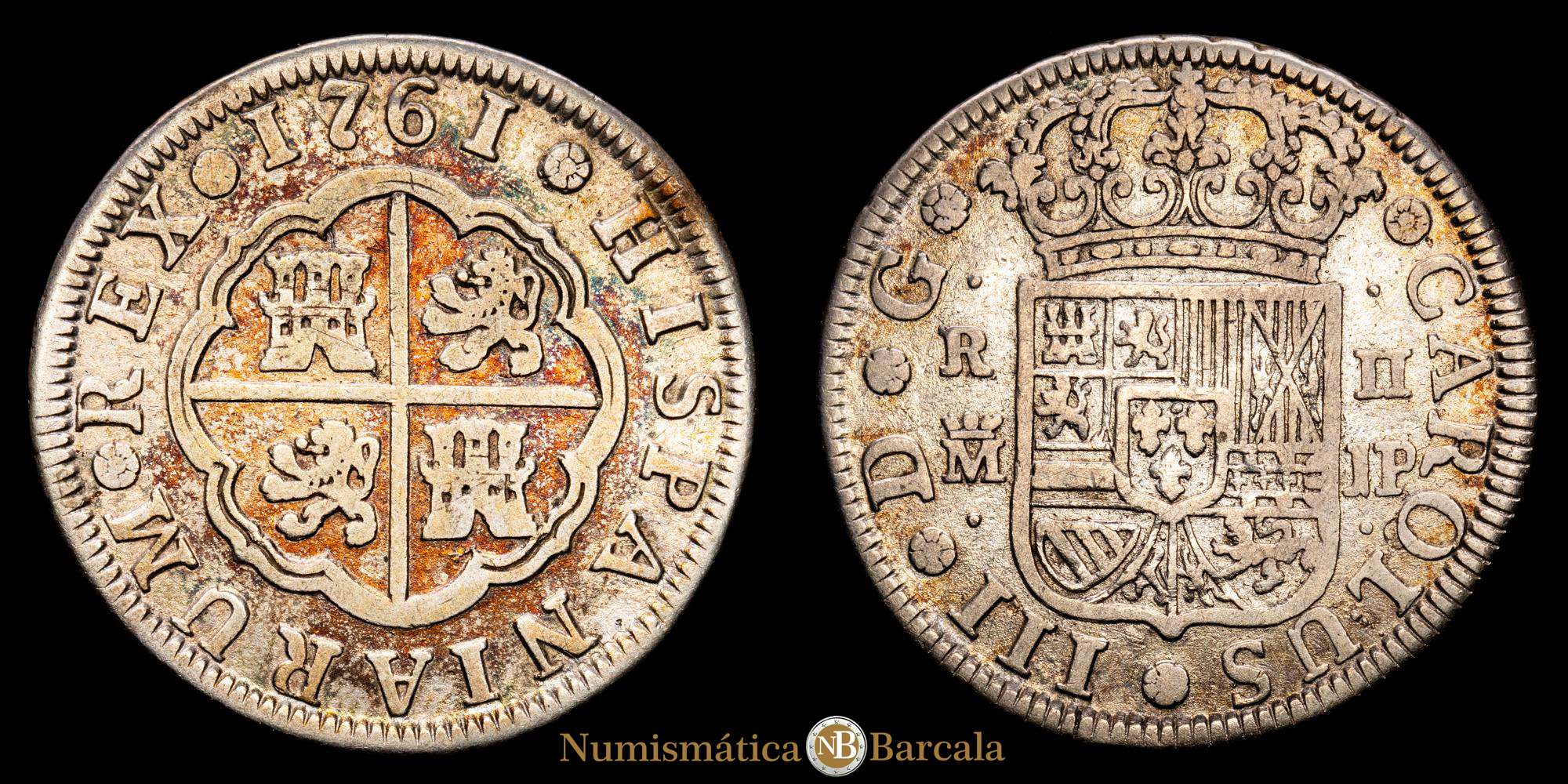 Numismática Barcala > Productos > Carlos III. 2 Reales. (5,57 g.). Madrid. 1761. J·P. AC-609. MBC.