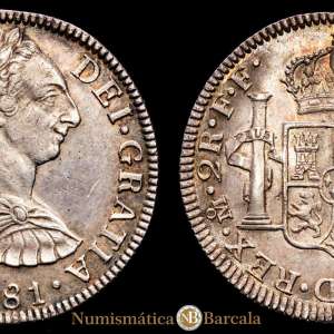 Carlos III. 2 Reales. (6,75 g.). México. 1781. F·F. AC-670. EBC+. Gran parte de brillo original. Rara así