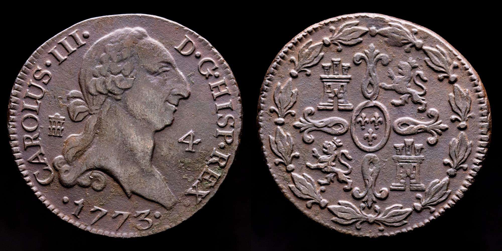 Carlos III. 4 Maravedís. (5,11 g.). Segovia. 1773. AC-53. MBC+.