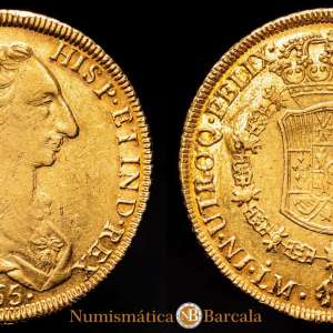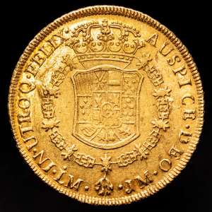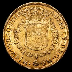 Numismática Barcala > Productos > Carlos III. 8 Escudos. (27 g.). Lima. 1765. J·M. AC-1918. MBC+. Tipo cara rata. Primer tipo. Bello color. Escaso.