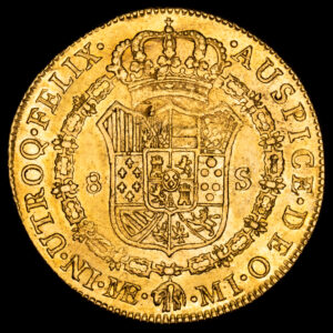 Numismática Barcala > Productos > Carlos III. 8 Escudos. (27,04 g.). Lima. 1783. Ensayador M·I. Aureo y Calicó 1945. EBC+. Brillo original. Bella, rara así.