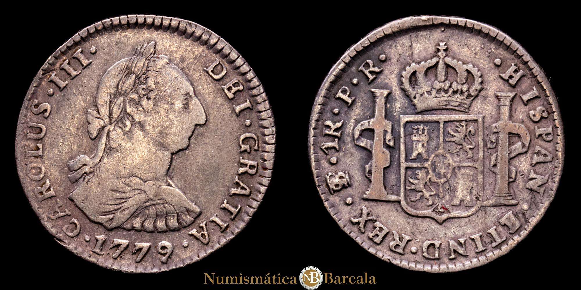 Numismática Barcala > Productos > Carlos III. Potosí. (1759-1788) 1 Real 1779 JR (Ensayadores Pedro Martín Albizu y Juan Palomo y Sierra) AG.903, 21 mm; 3,23g. (AC.483). VF.