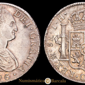 Numismática Barcala > Productos > Carlos IIII. 8 Reales. (27,01g.). Mexico. 1806. Ensayador T·H. AC-984. XF-.