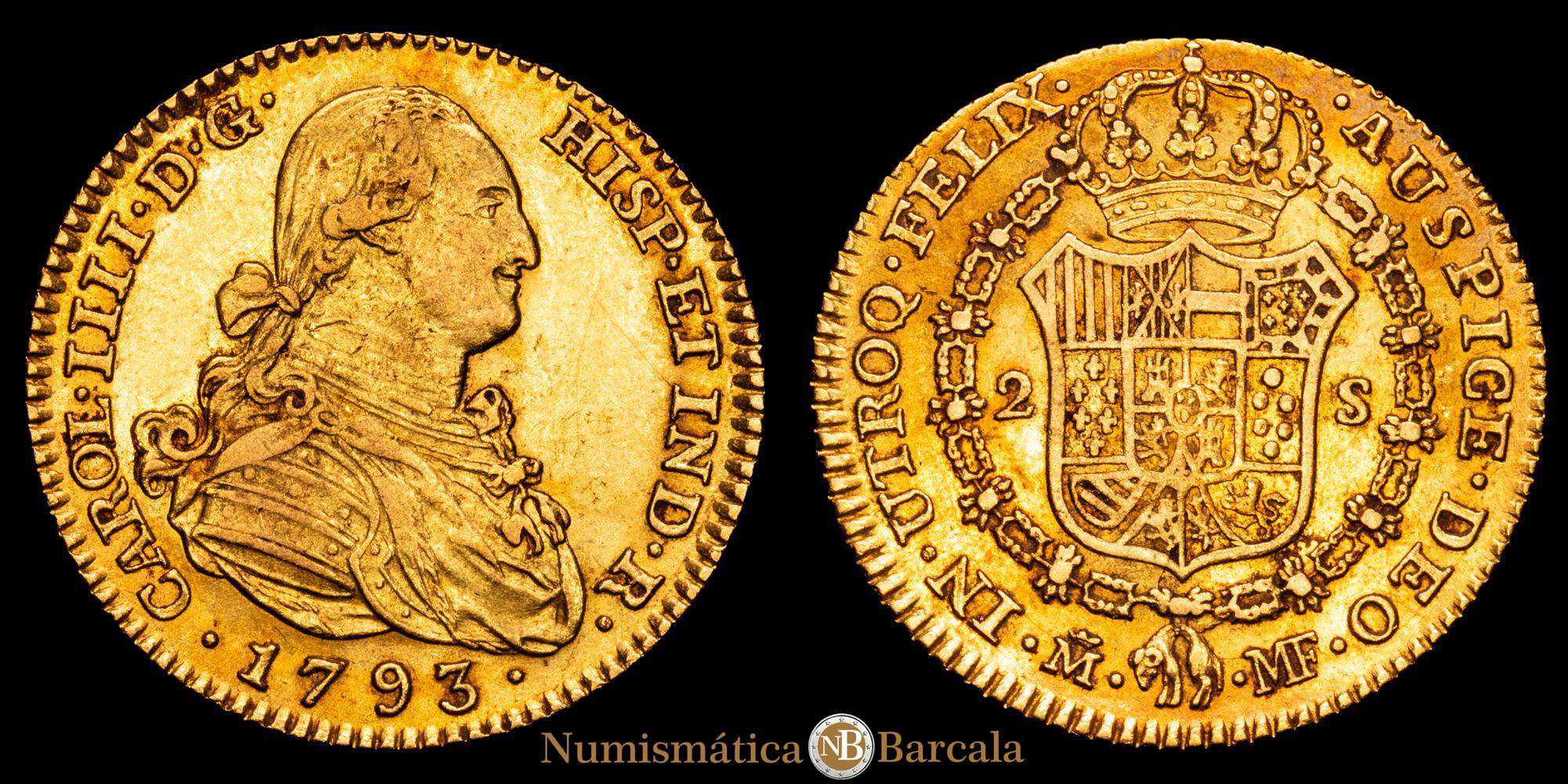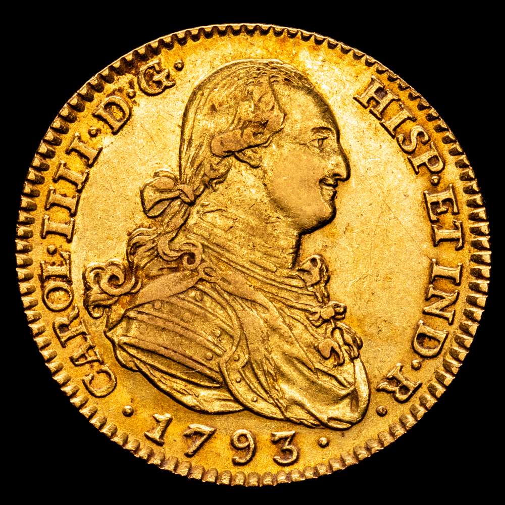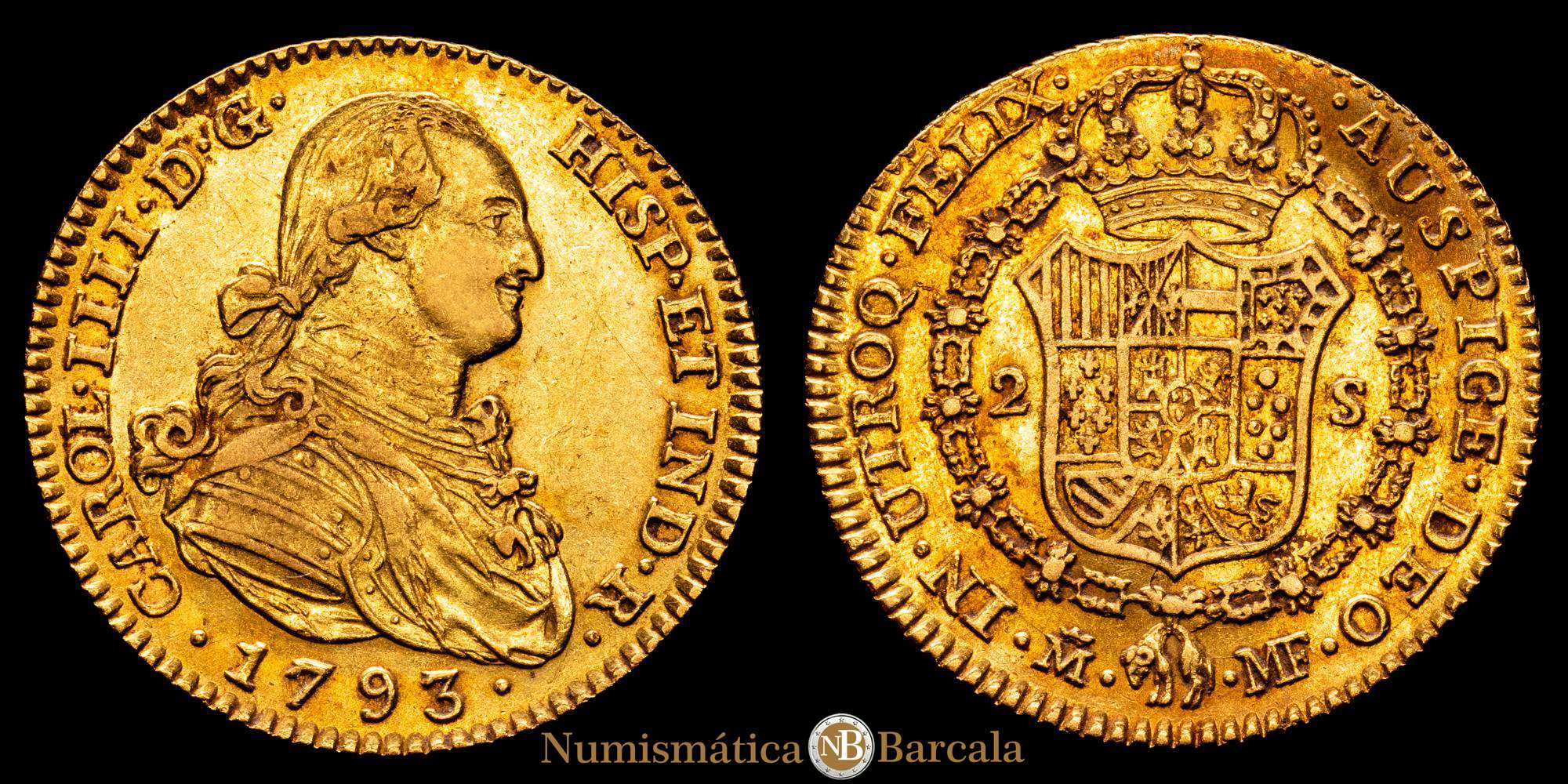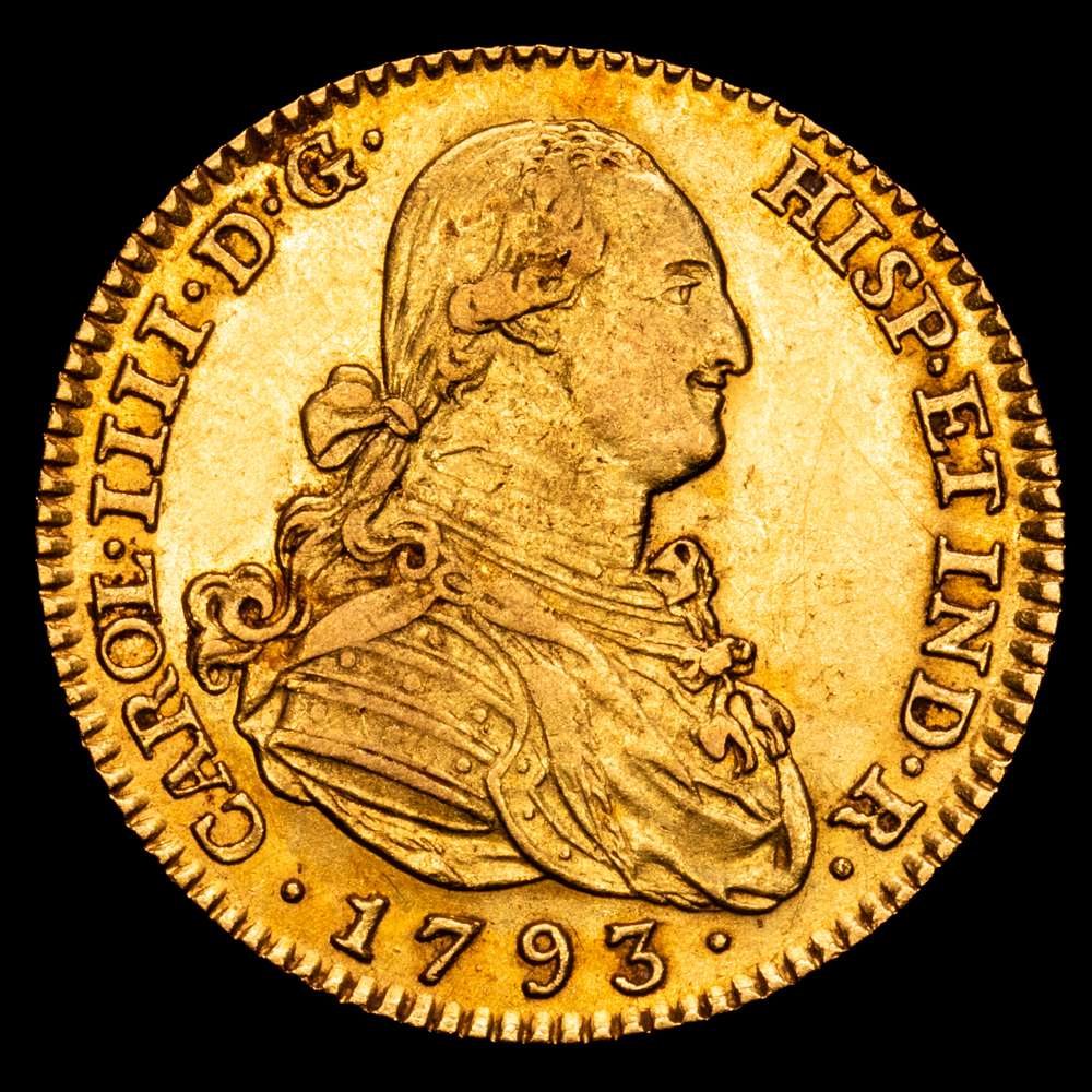 Carlos IV (1788-1808). 2 escudos. 1793. Madrid. MF. (Cal-1279). Au. 6,78 gramos. Bonito color. Restos de brillo originales. EBC-.
