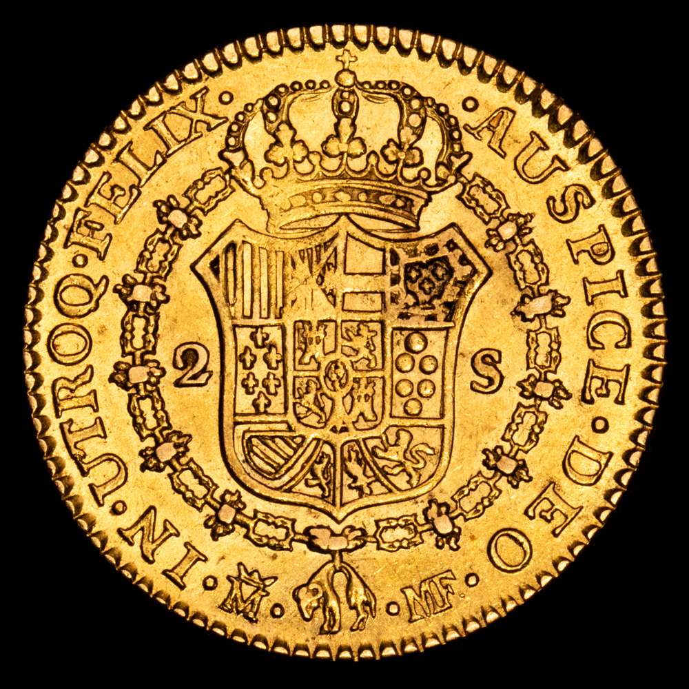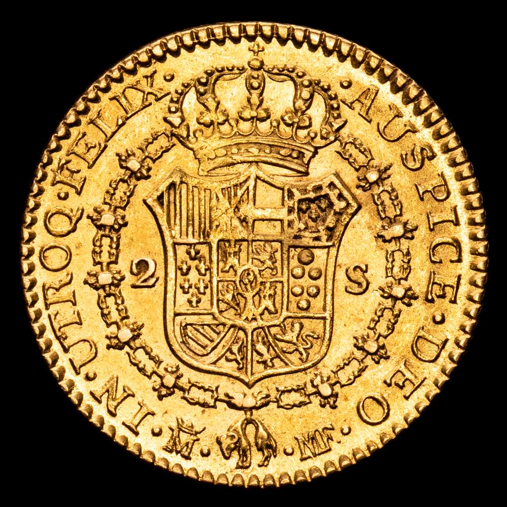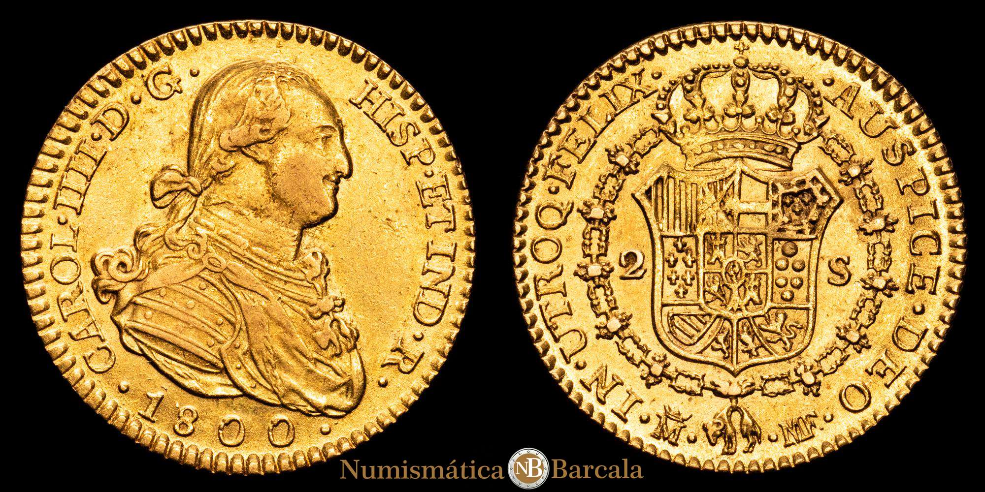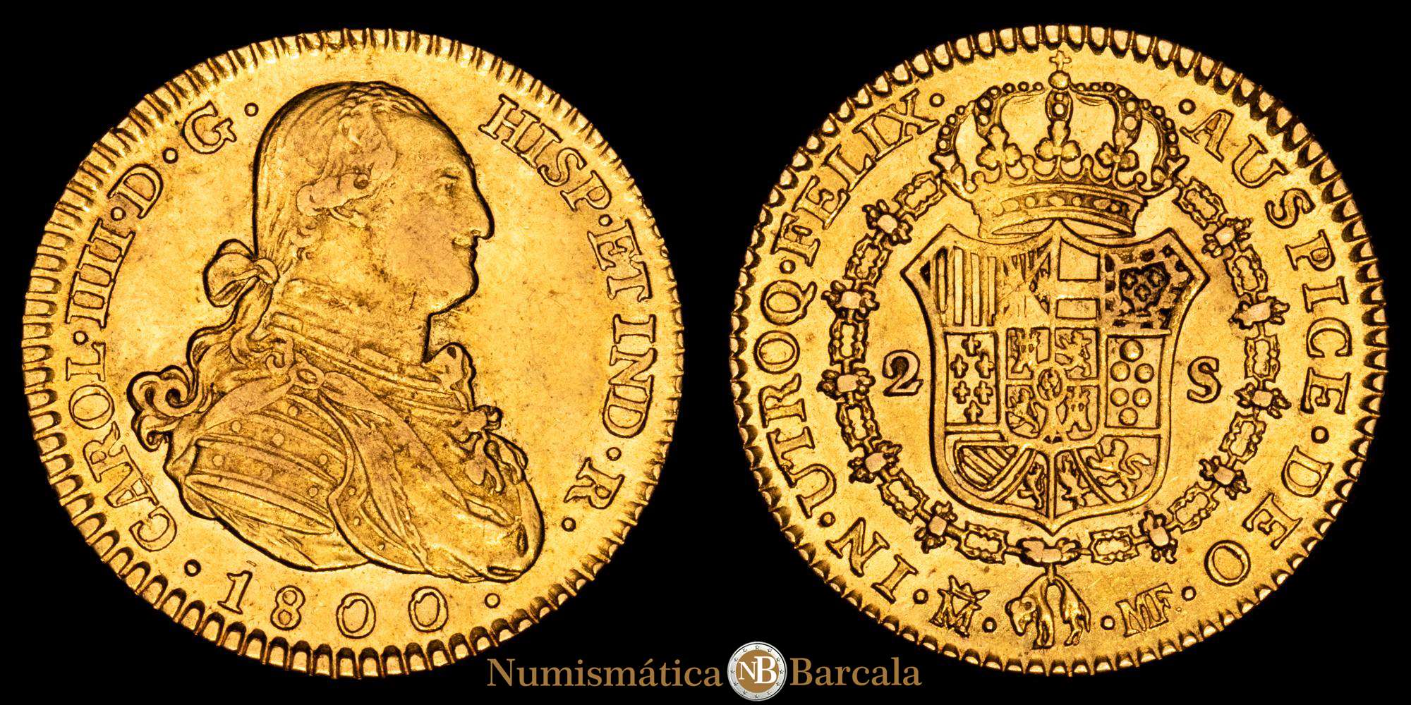 Numismática Barcala > Productos > Carlos IV (1788-1808). 2 escudos. 1800. Madrid. MF. (Cal-1297). Au. 6,75 gramos. MBC+.