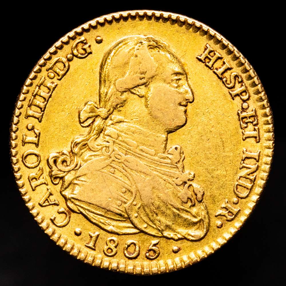 • Carlos IV  (1788-1808). 1805 TH. México. 8 escudos. (CA 1649).(Cal onza-1041). 27,05 gramos. AU. Busto propio. Brillo original. Muy bonita. EBC/EBC+. Carlos IV (1788-1808). 1805 TH. México. 8 escudos. (CA 1649).(Cal onza-1041). 27,05 gramos. AU. Busto propio. Brillo original. Muy bonita. EBC/EBC+. 4.500,00€