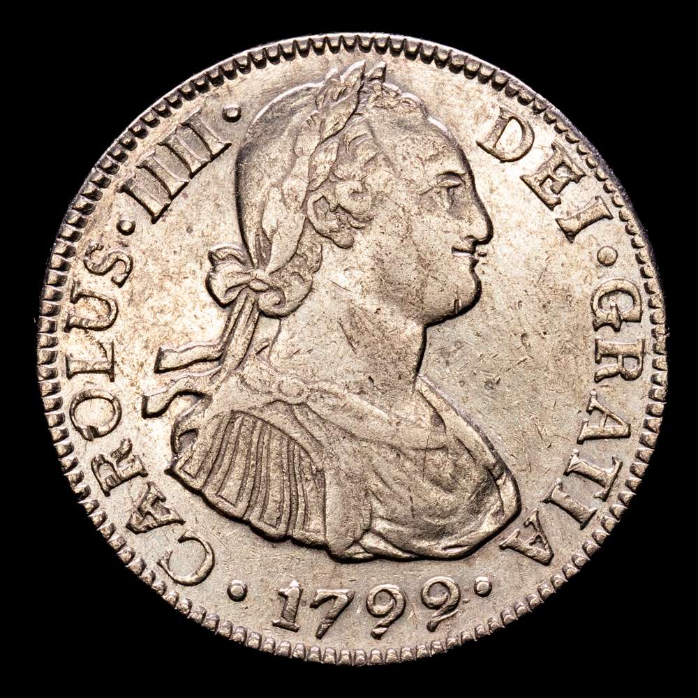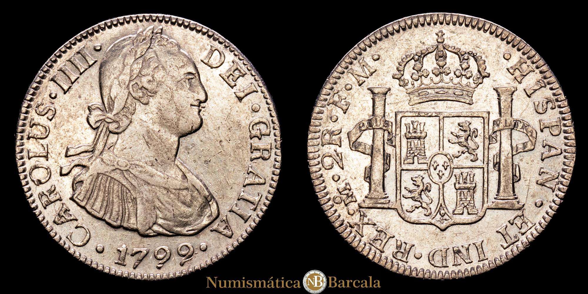 Numismática Barcala > Productos > Carlos IV (1788-1808). 2 reales. 1799. México. FM. (Cal-635). Ag. 6,71 gramos. MBC+/EBC-. Escasa.