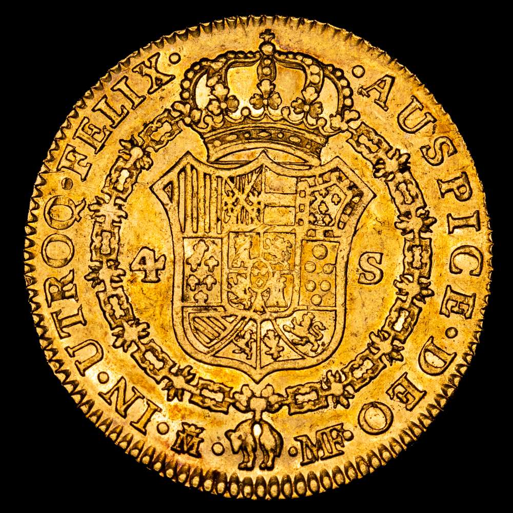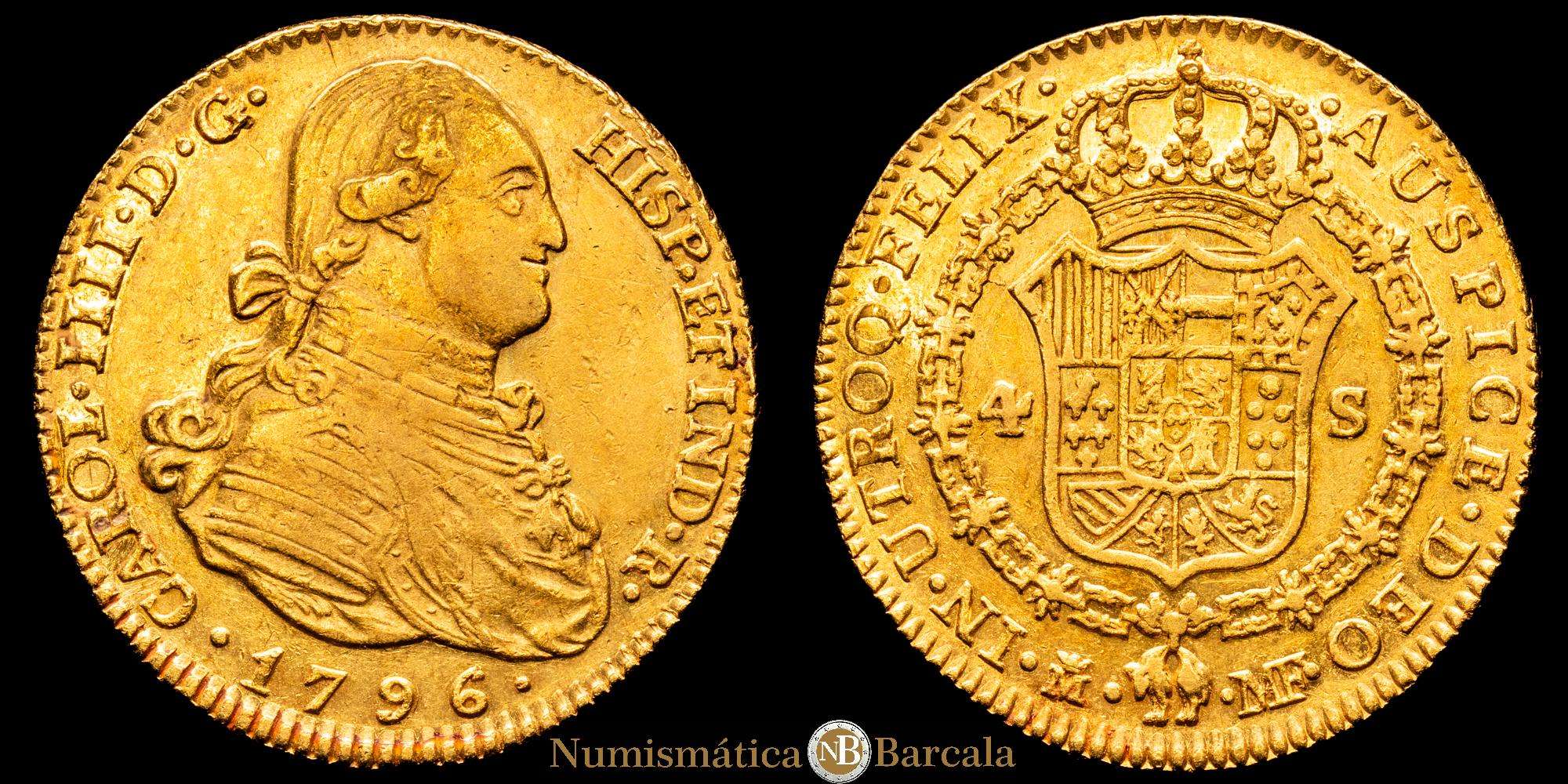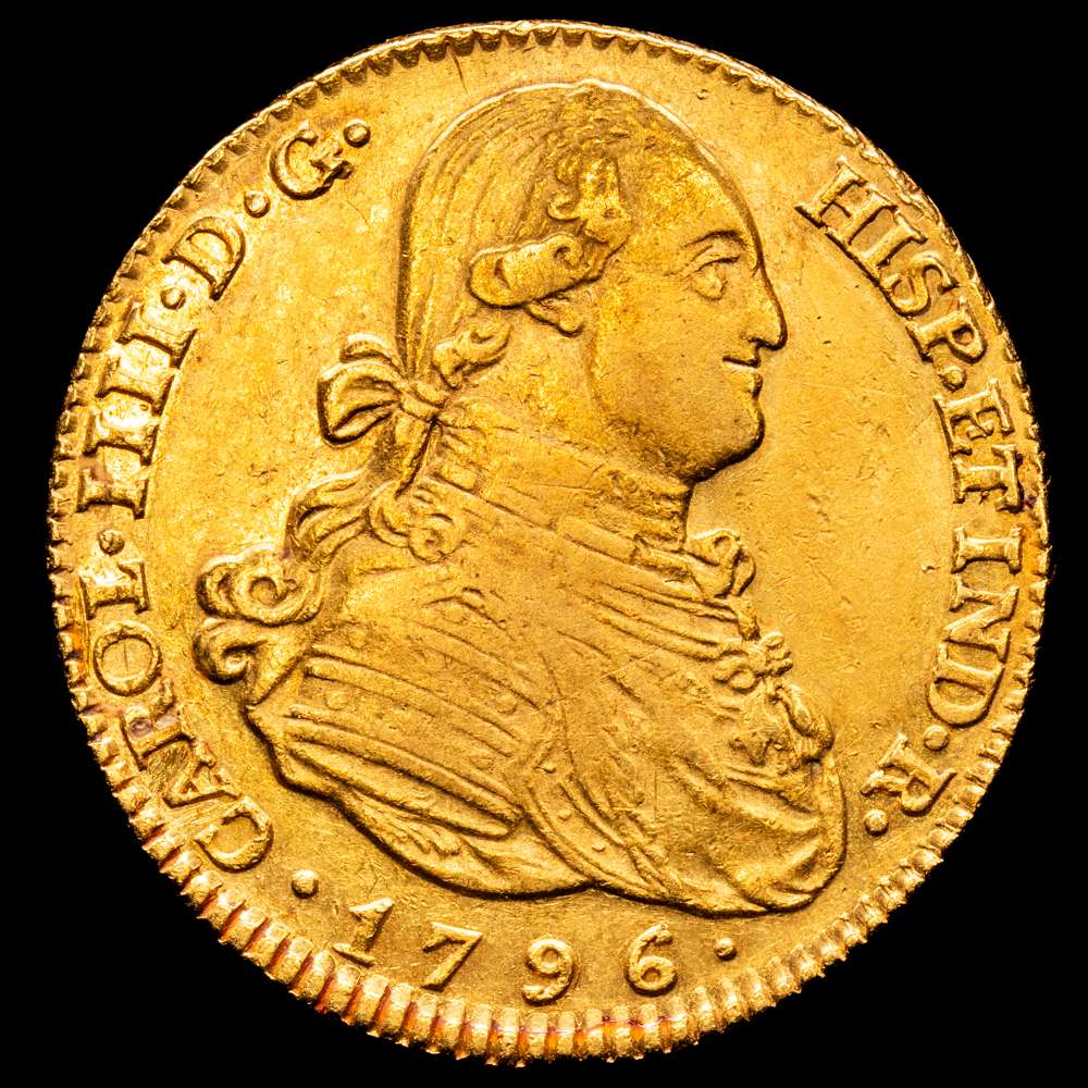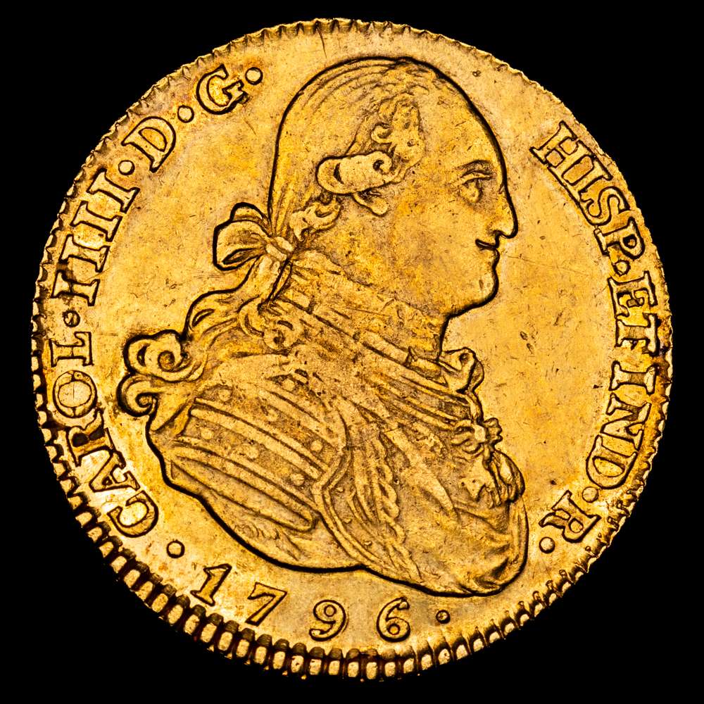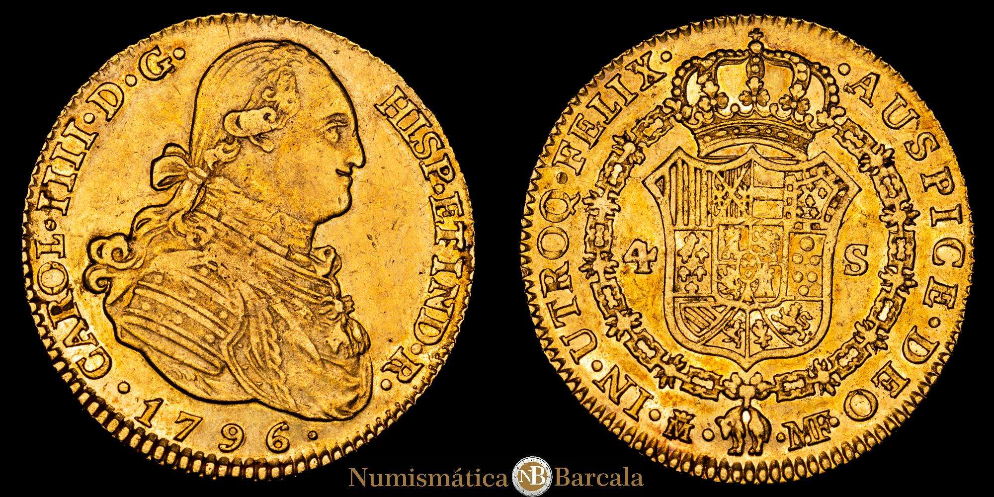 Carlos IV (1788-1808). 4 escudos. 1796. Madrid. MF. (Cal-1479). Au. 13,41 gramos. Restos de brillo originales. MBC+/EBC.
