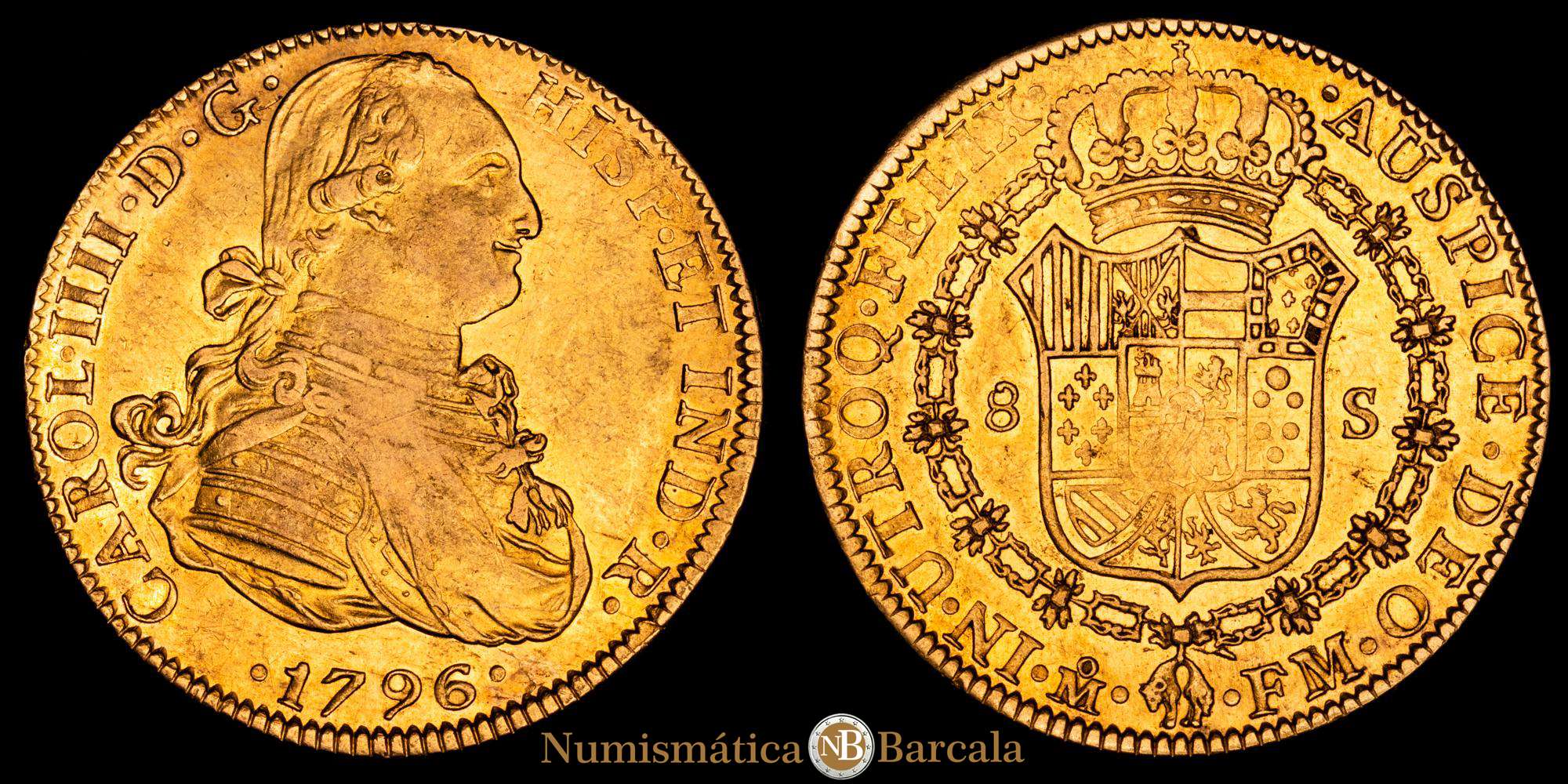 Carlos IV (1788-1808). 8 escudos. 1796. México. FM. (Cal-1636). (Cal onza-1027). Au. 27,06 gramos. 36,2 mm.