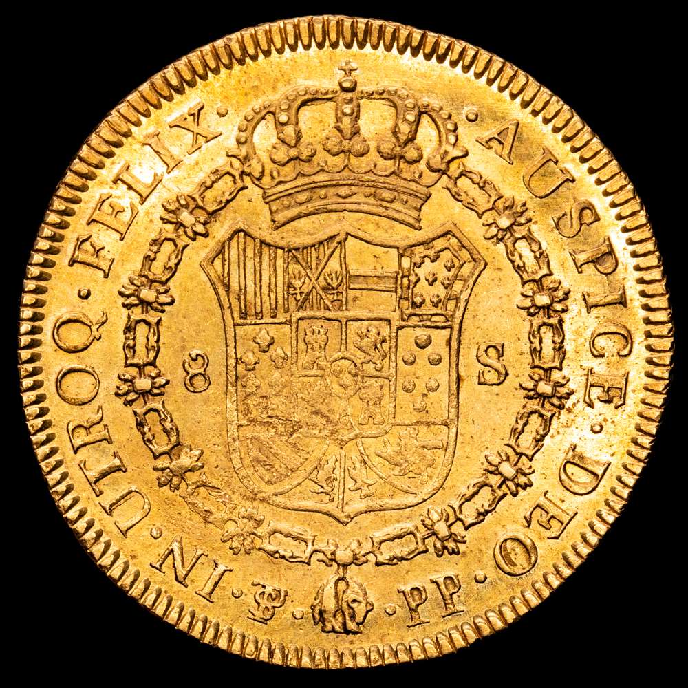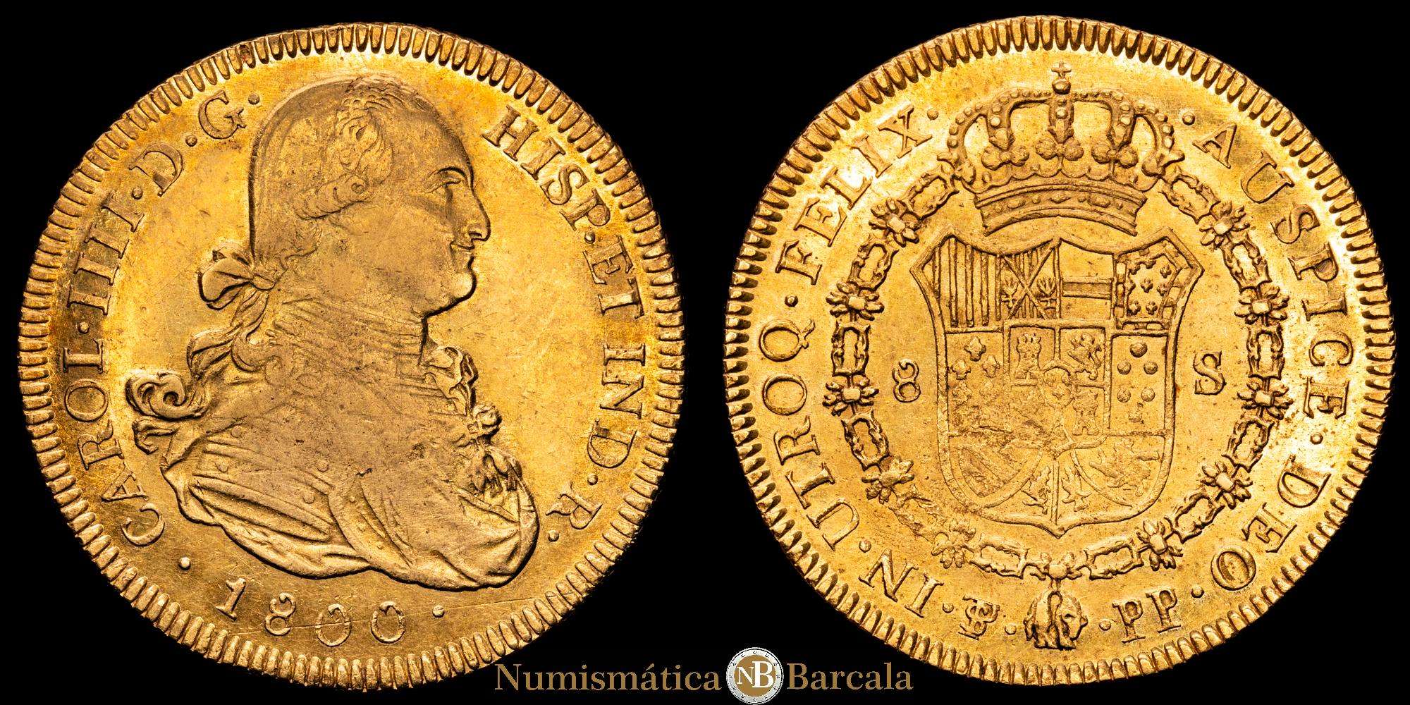 Numismática Barcala > Productos > Carlos IV (1788-1808). 8 escudos. 1800. Potosí. PP. (Cal-1706). (Cal onza-1099). Au. 27,01 gramos. MBC+/EBC-. Gran parte del brillo original. Escasa.