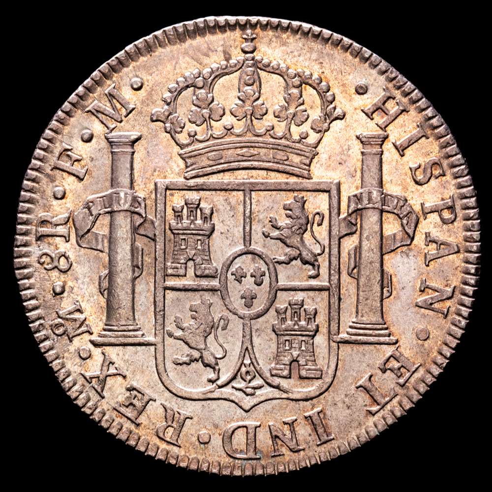 Carlos IV (1788-1808). 8 reales. 1789. México. FM. (Cal-950). Ag. 27,01 gramos. Busto de Carlos III y ordinal IV. Suave pátina. Atractiva. Muy escasa así. EBC/EBC+.