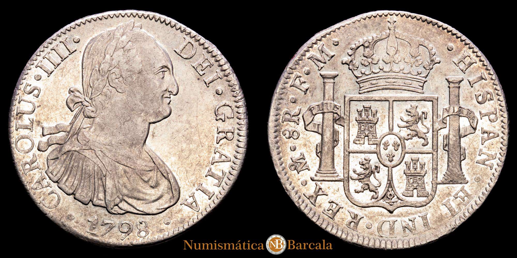 Numismática Barcala > Productos > Carlos IV (1788-1808) 8 Reales. 1798. MÉXICO. FM 26,92 grs. (Cal-961). Ag. Brillo original. Bella. EBC/EBC+.