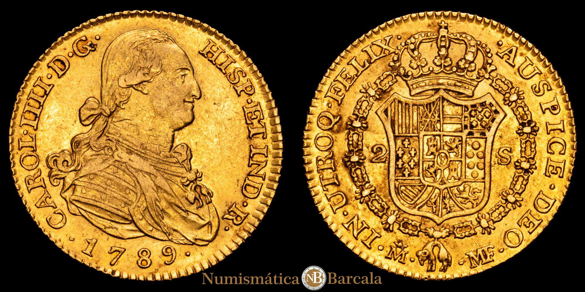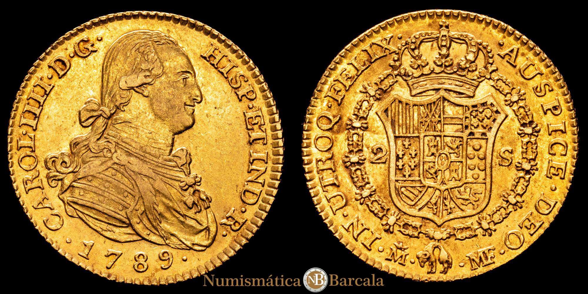 Numismática Barcala > Productos > Carlos IV. 2 Escudos. (6,74 g.). Madrid. 1789. M·F. AC-1274. Bonito color. EBC-.