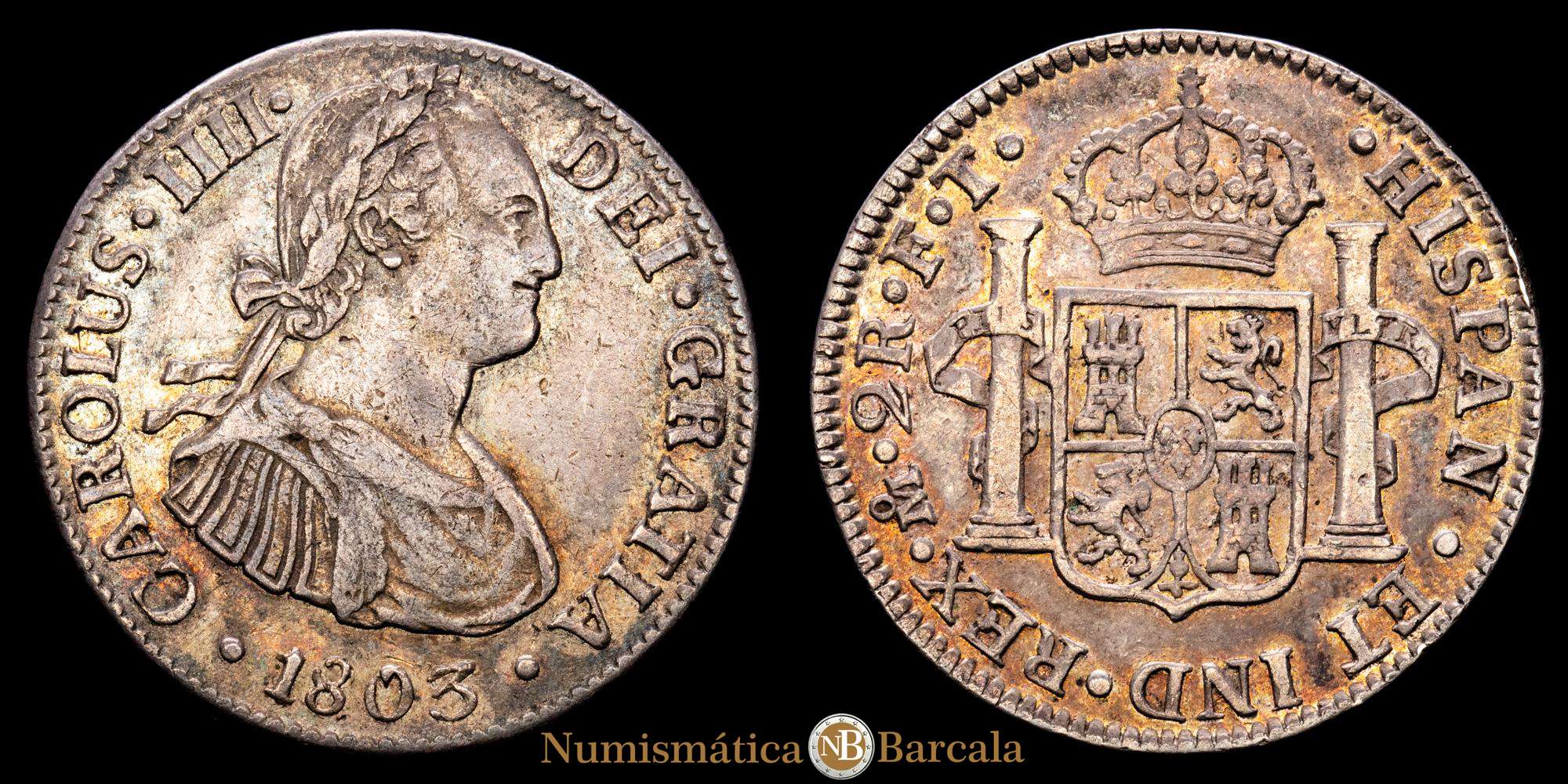 Numismática Barcala > Productos > Carlos IV. 2 Reales. (6,67 g.). México. 1803. F·T. (AC.641). MBC+. Bello color