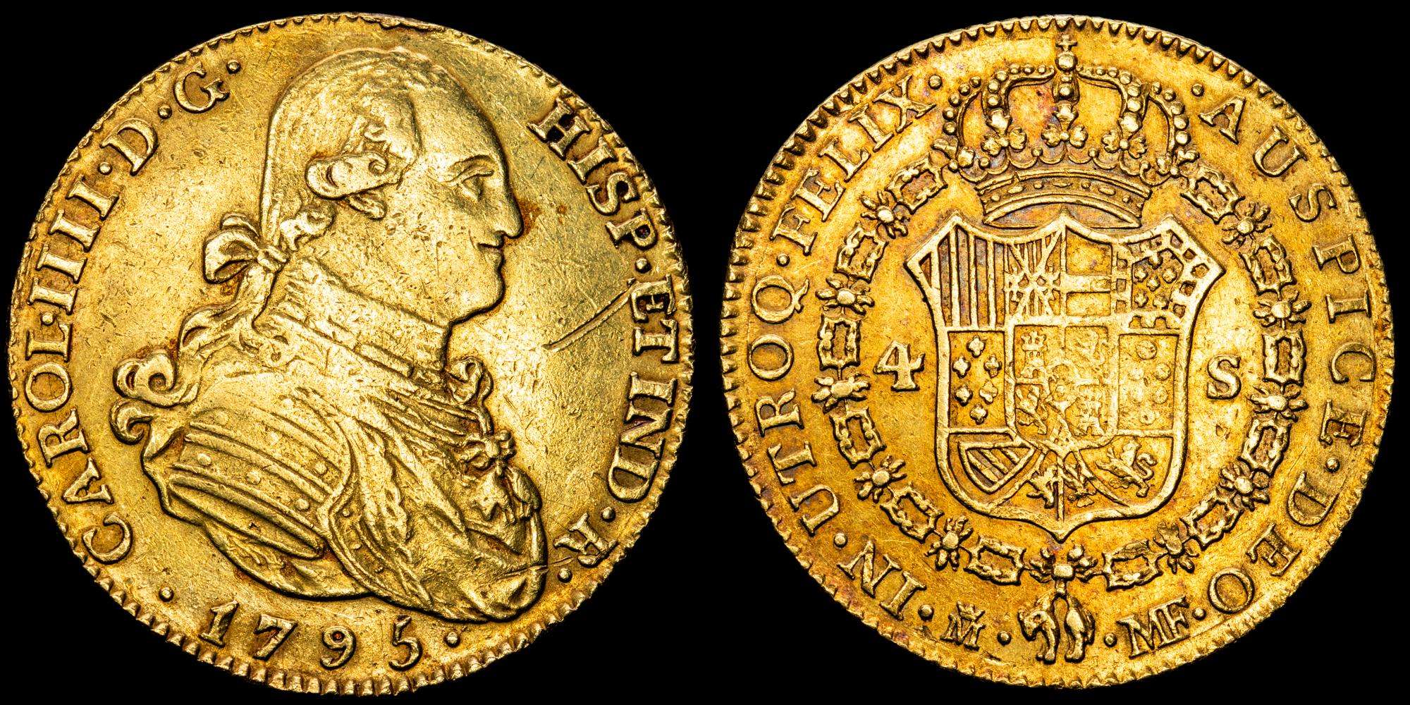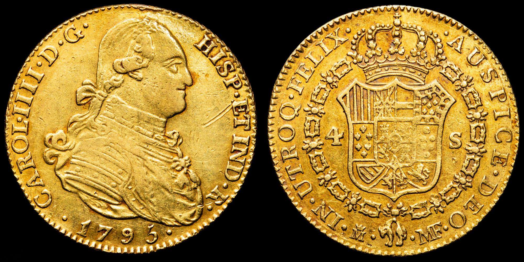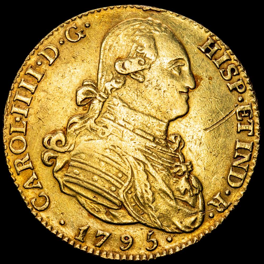 Carlos IV. 4 Escudos. (13,42 g.). Madrid. 1795. M·F. AC-1478. MBC/MBC+. (Rayita en anverso).