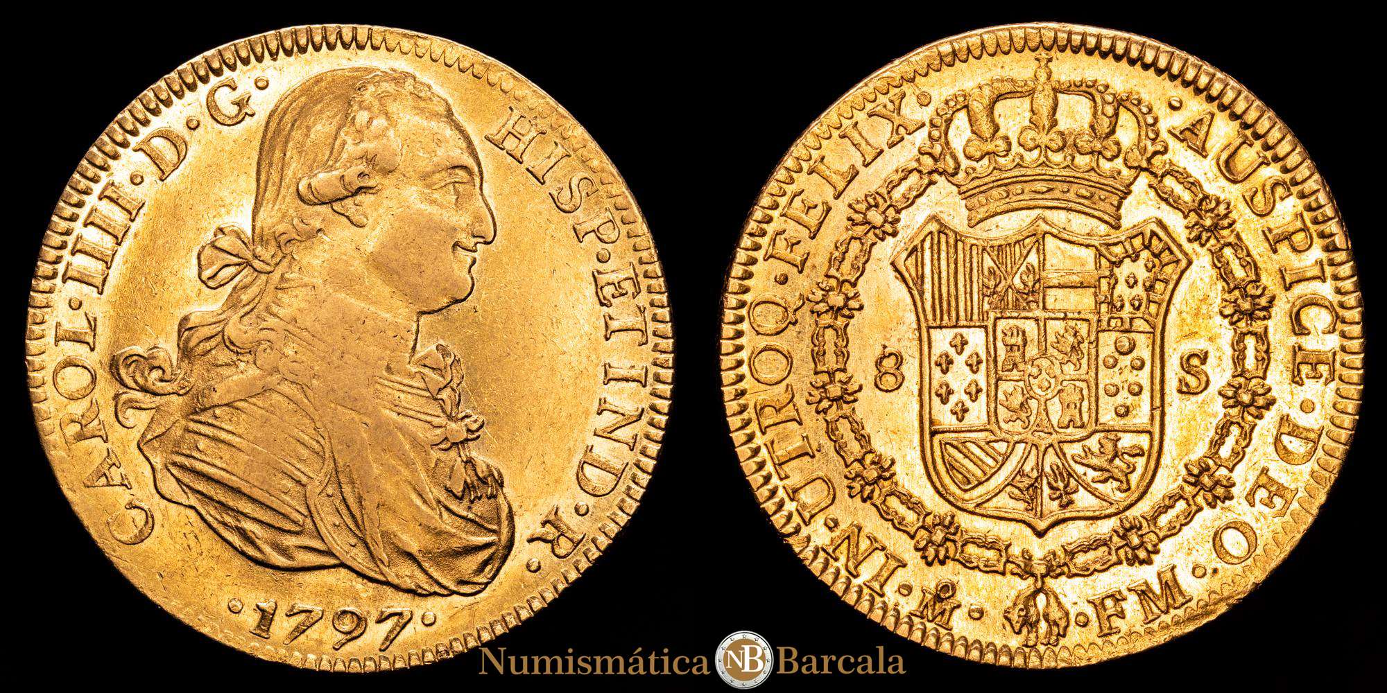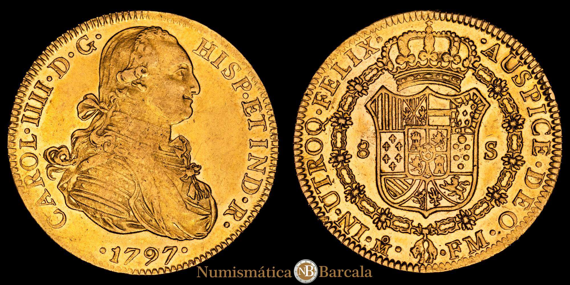 Carlos IV. 8 Escudos. (27,01 g.). Casa de la Moneda de la Ciudad de México. 1797. F·M. (AC-1637) (Cal.Onza 1028).