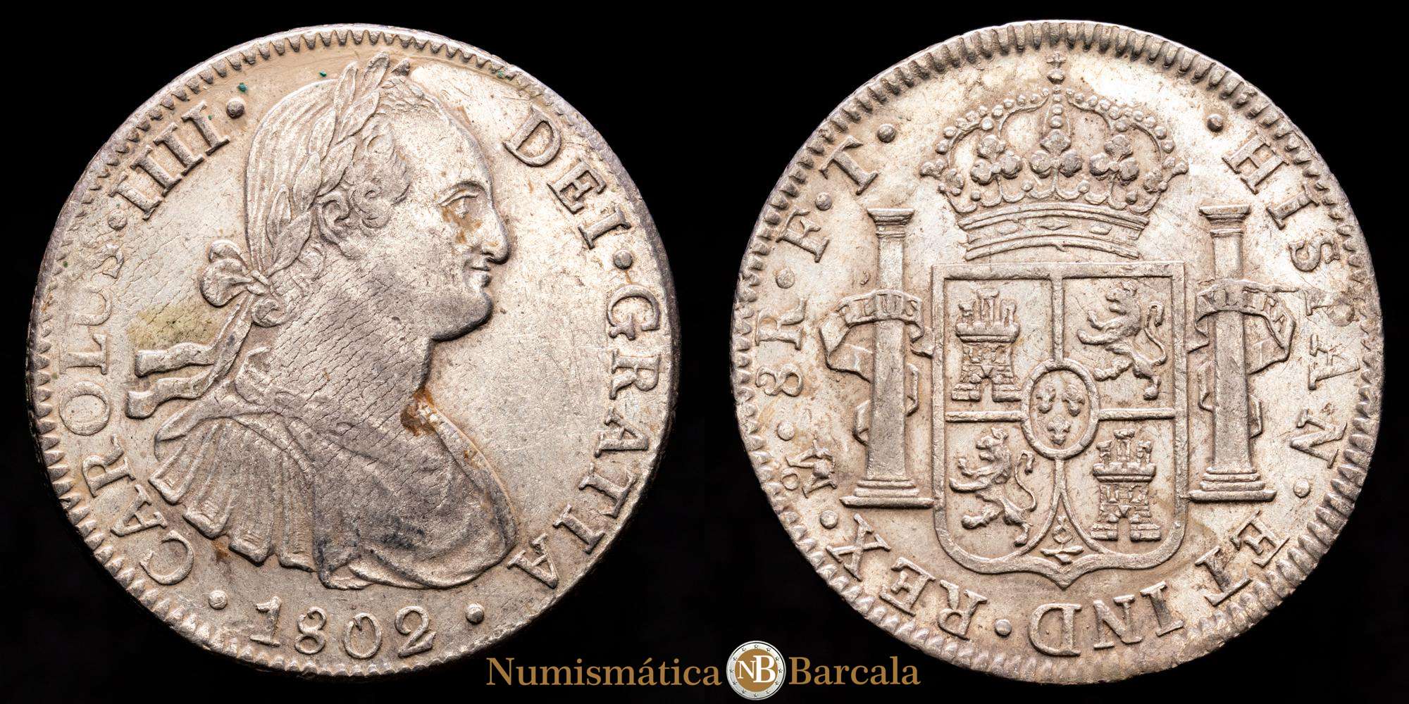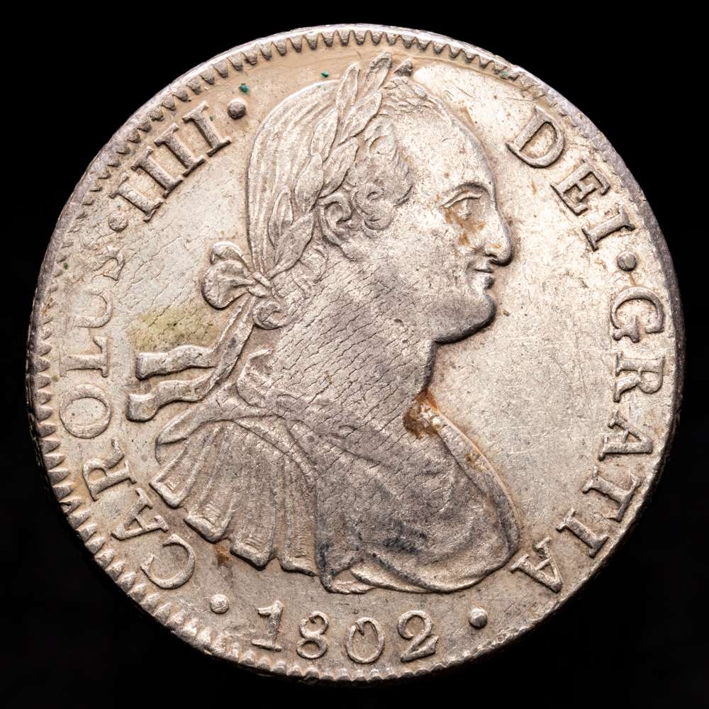 Carlos IV. 8 Reales. 1802. México. F.T. 26,93 grs. (Zonas plata agria). AC-975. EBC-/EBC.