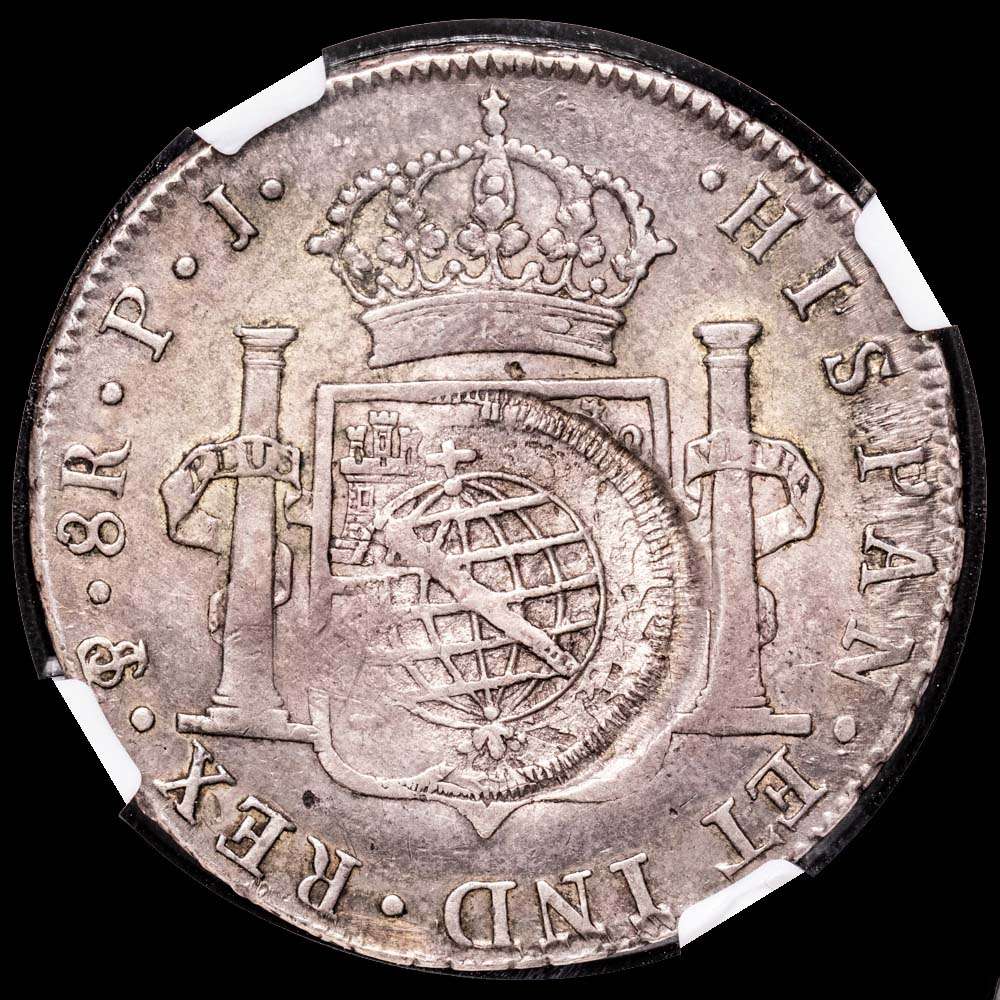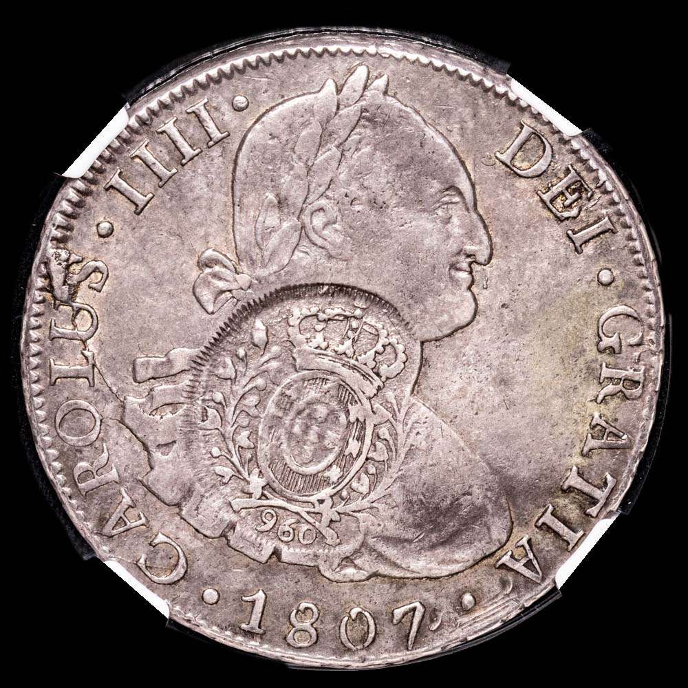 Carlos IV 8 Reales. 1807. Potosí. Ensayador P·J. XF Details. Acuñado sobre un 960 Reis. Minas Gerais C/S Bol. 8R.