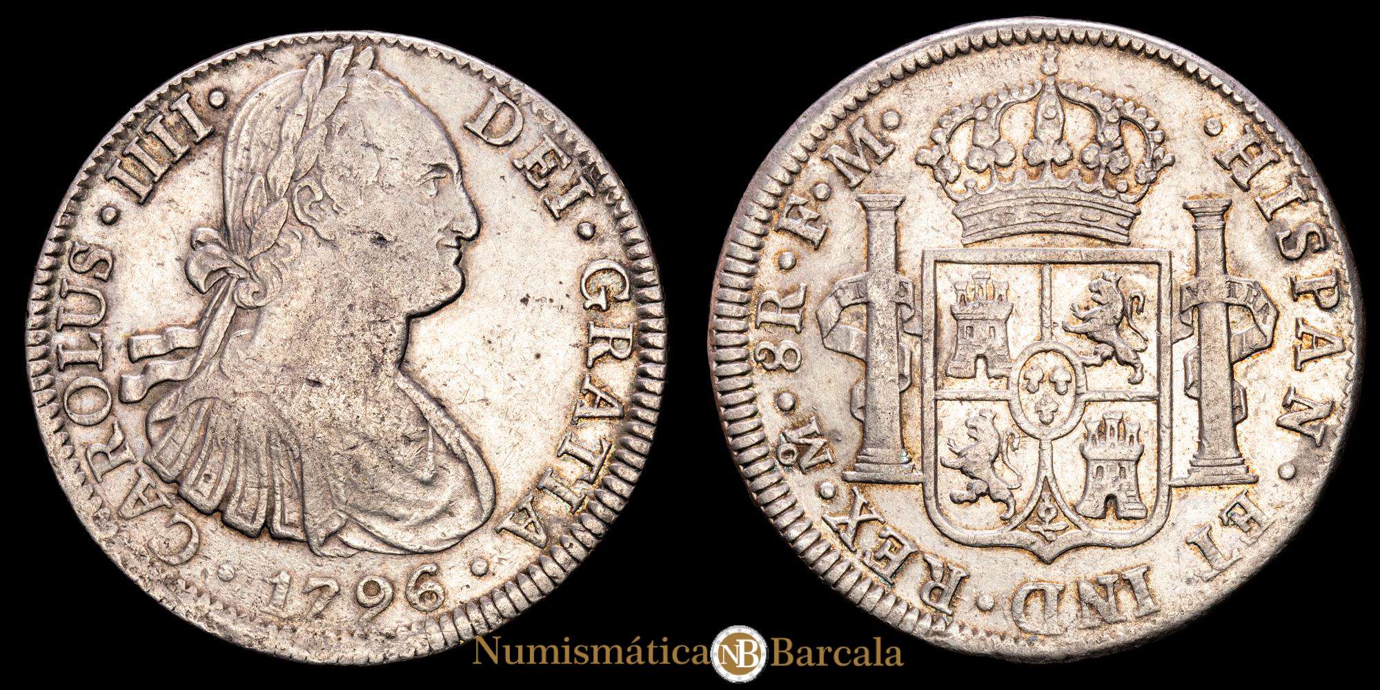 Numismática Barcala > Productos > Carlos IV. 8 Reales (26,75 g.). 1796. México. Ensayador F.M. AC-959. VF+