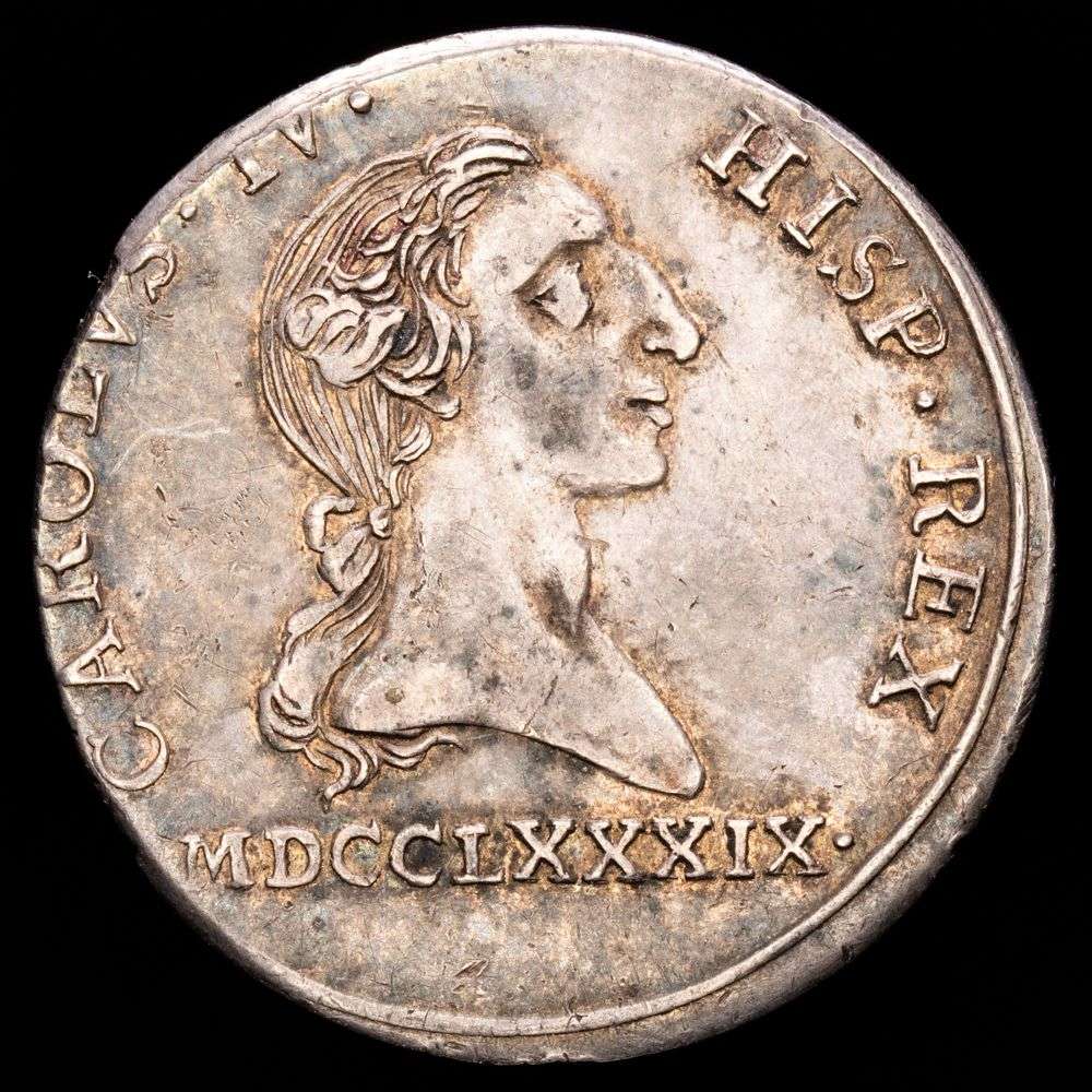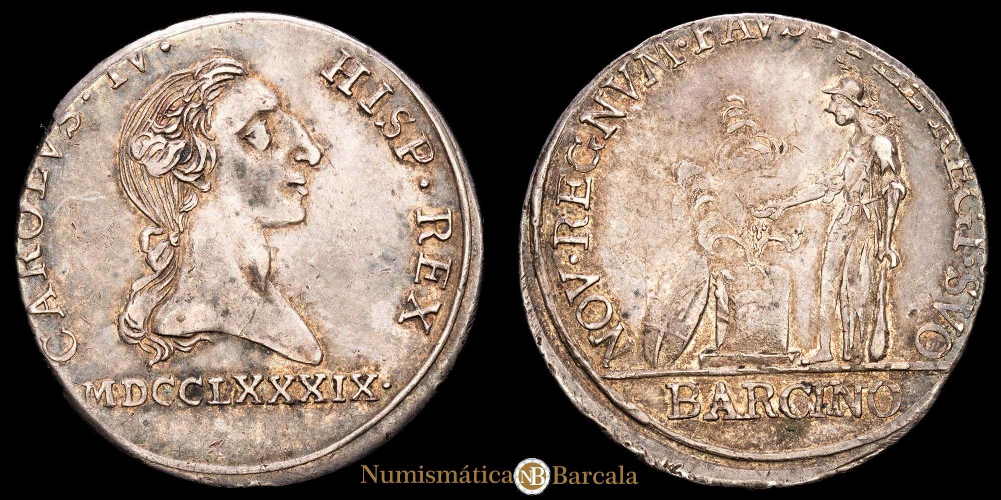 Carlos IV. Módulo 4 Reales (7,56 g.). Barcelona. 1789. VQ-13073. MBC+. Medalla de Proclamación.