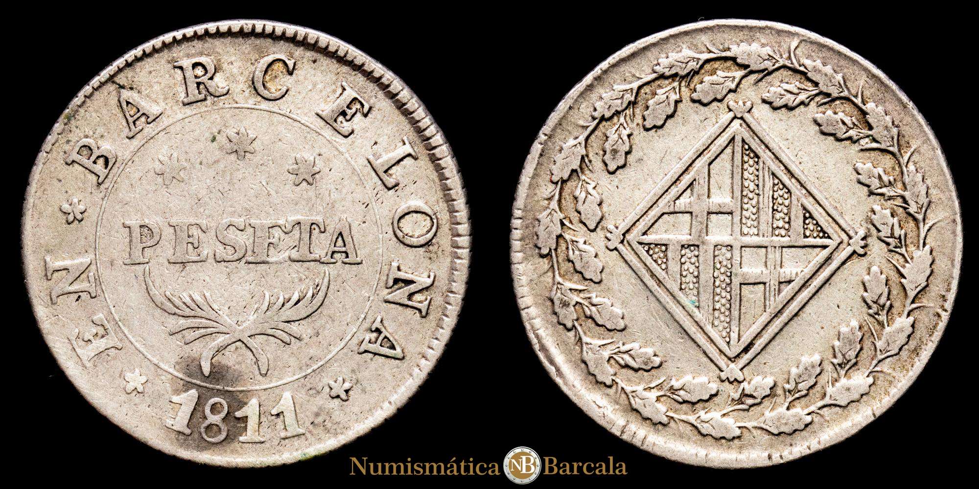 Numismática Barcala > Productos > Catalunya Napoleónica. 1 Peseta. (5,57 g.). Barcelona. 1811. AC-35. MBC+. Escasa.