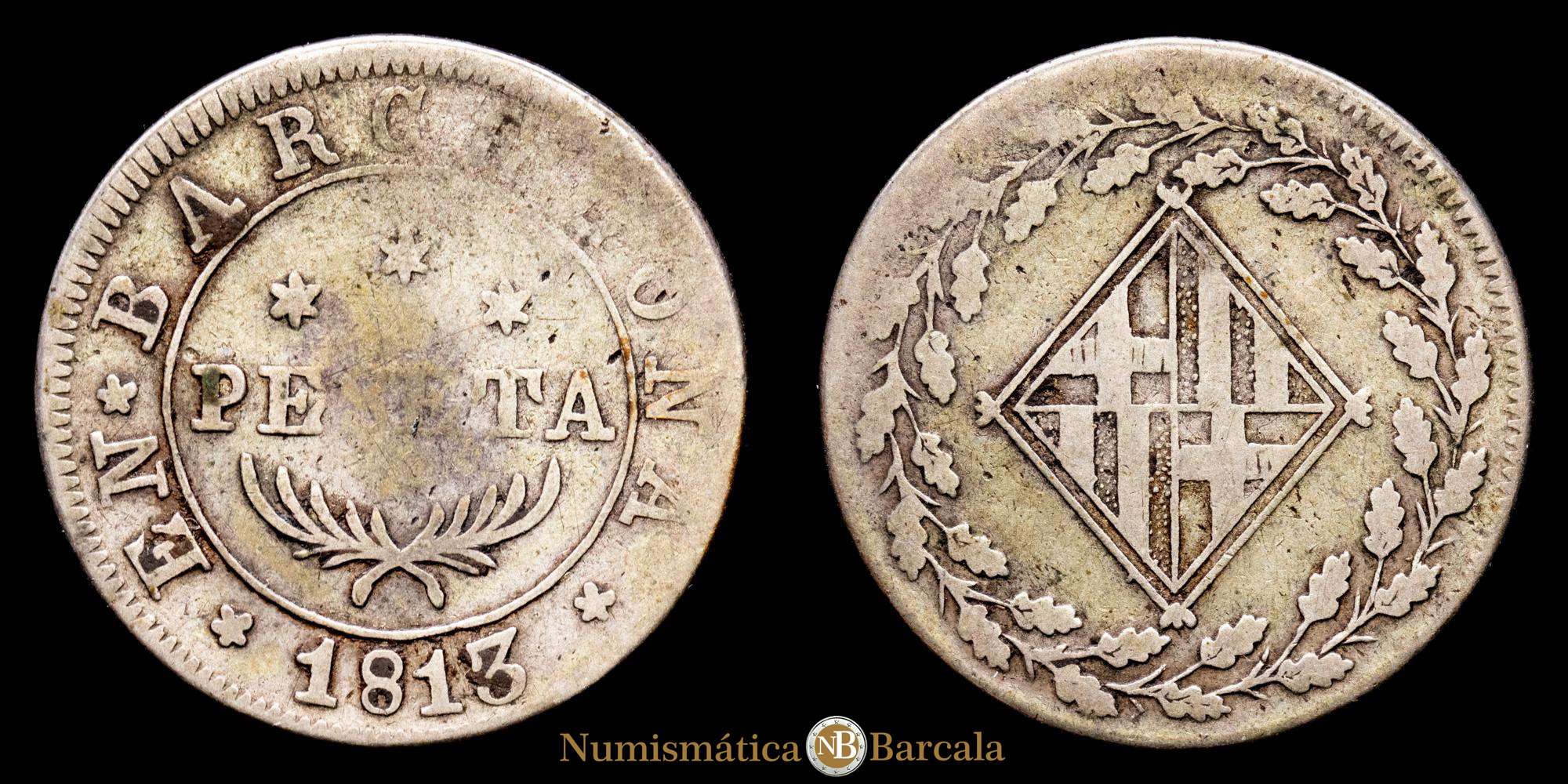 Catalunya Napoleónica. 1 Peseta. (5,86 g.). Barcelona. 1813. AC-37. MBC-.