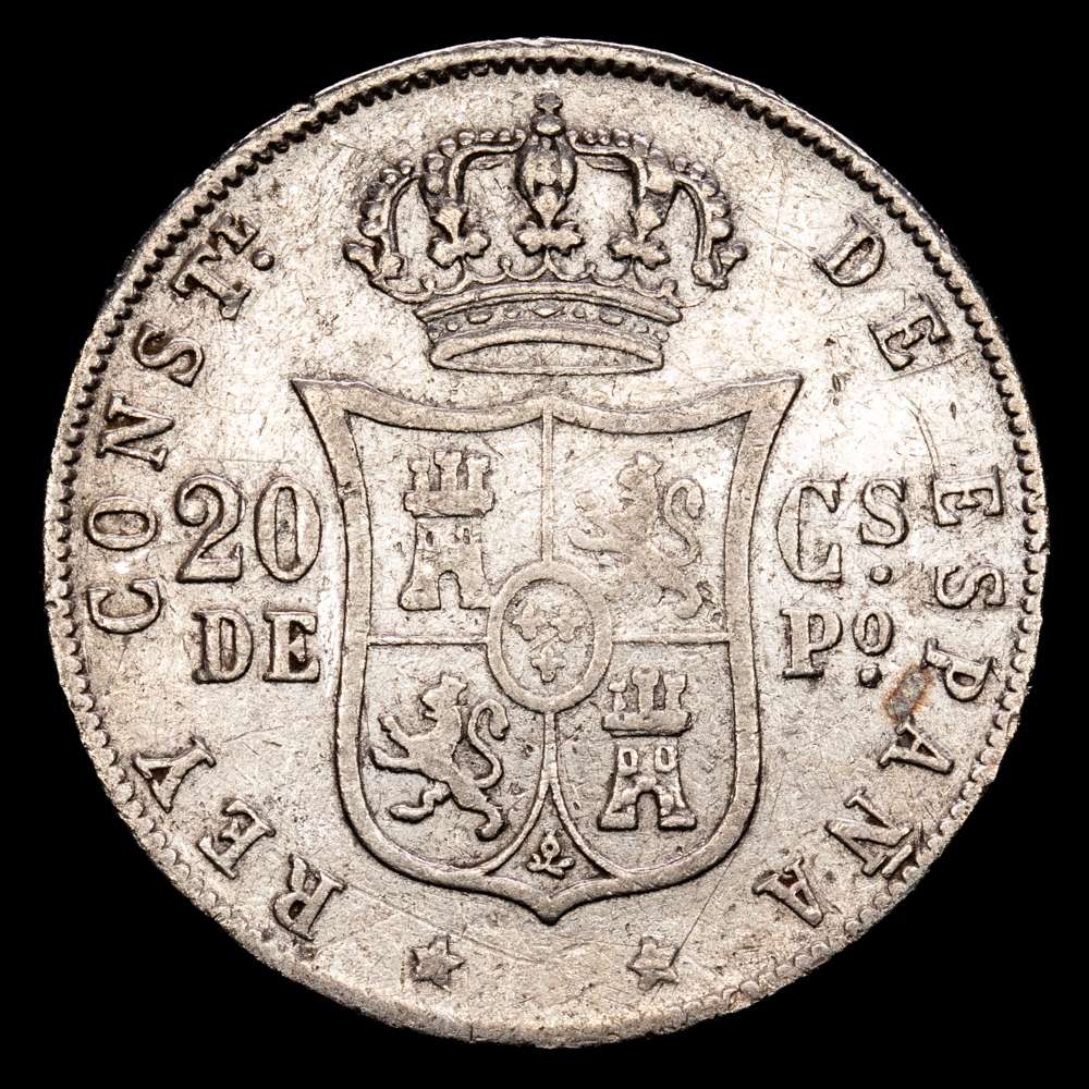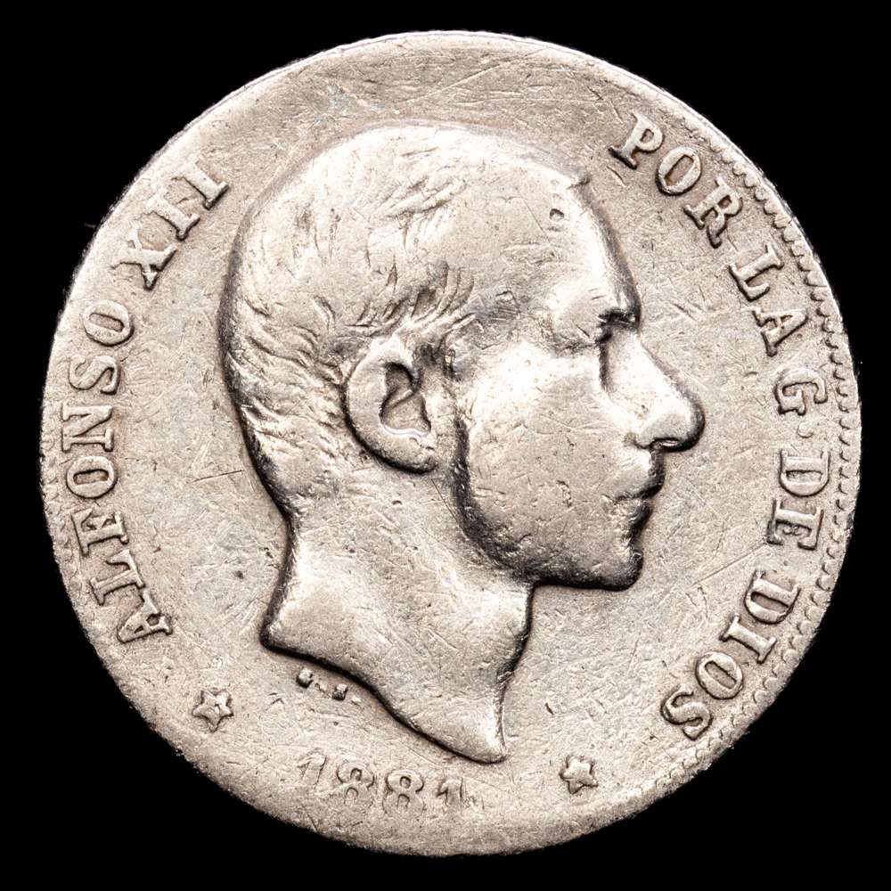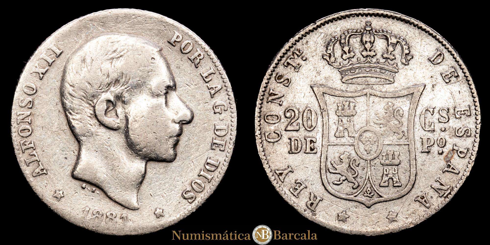 Centenario de la Peseta (1868-1931). Alfonso XII (1874-1885). 20 centavos. 1881. Manila. (Cal-105). Ag. 4,91 gramos. BC+.