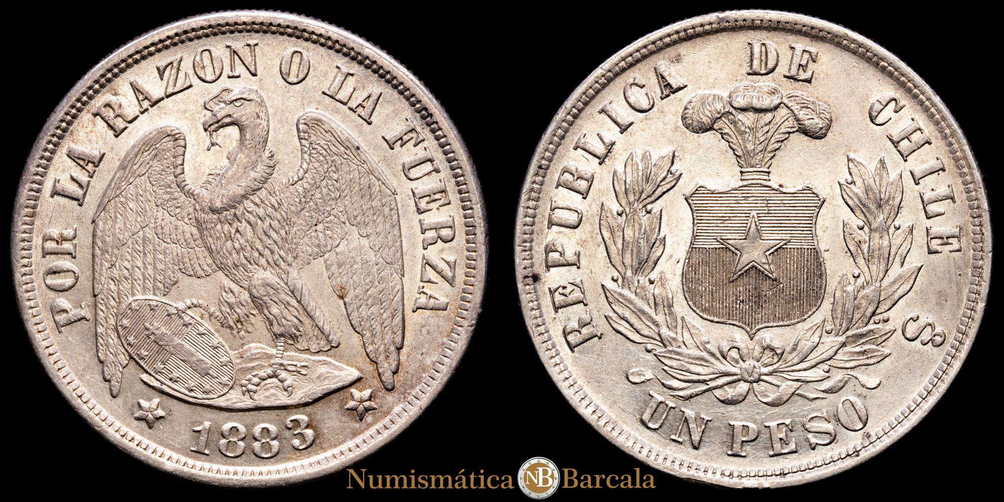 Chile. 1 peso. 1883. Santiago. (Km-142.1). Ag. 25,35 g. Bella. Escasa así. UNC-.