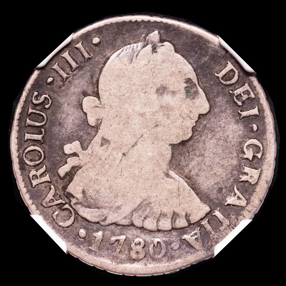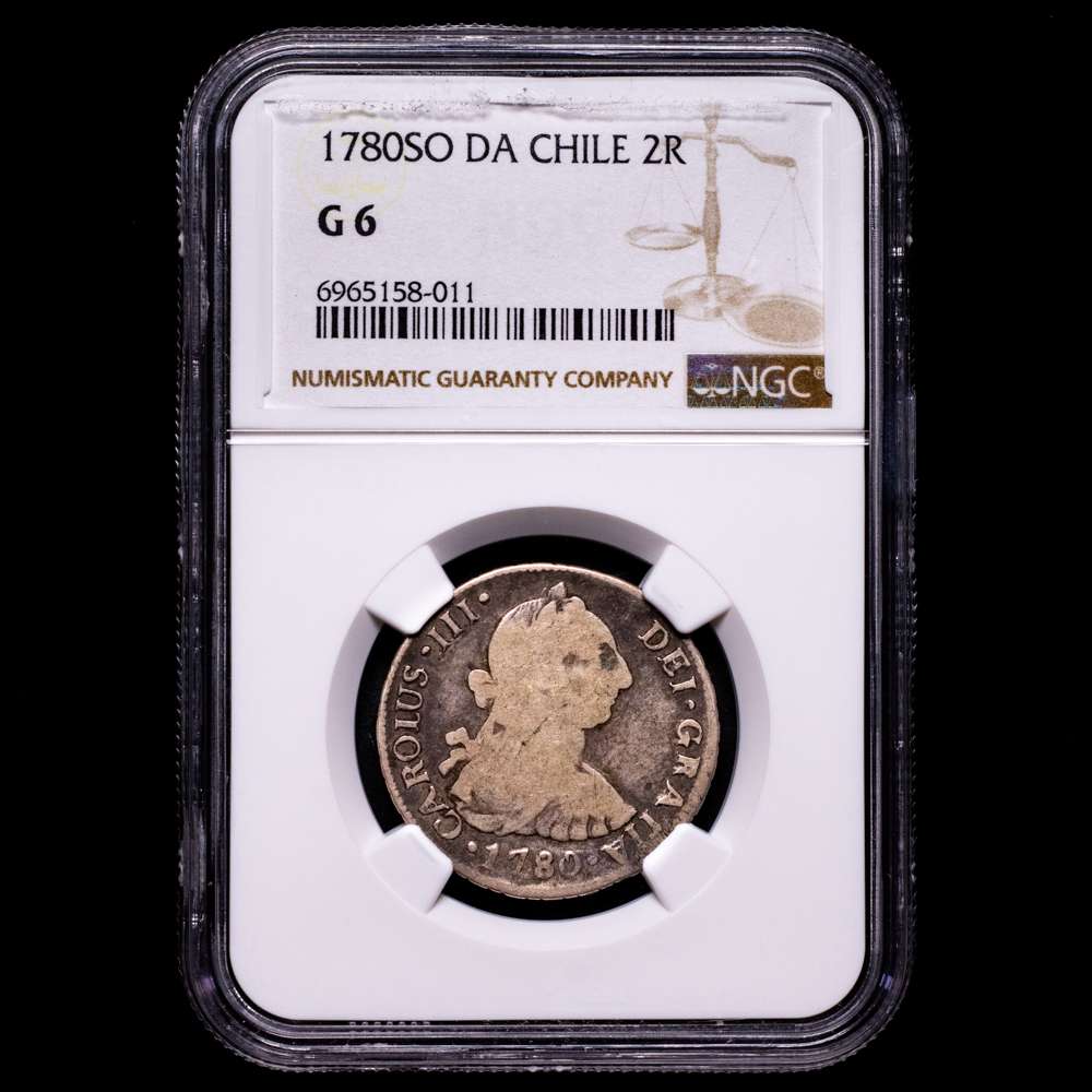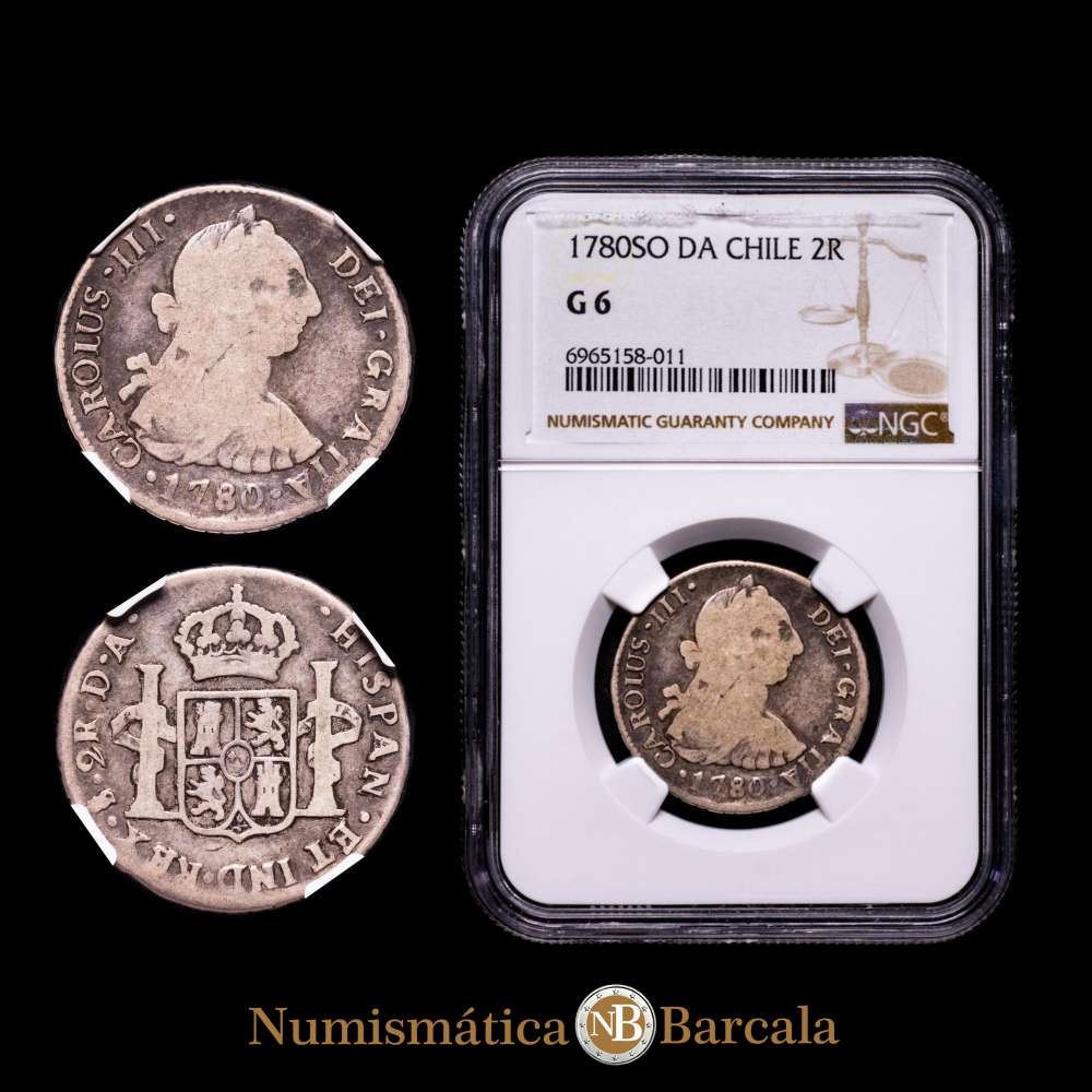 CHILE. 2 Reales, 1780-So DA. Casa de Moneda de Santiago. Carlos III. Encapsulado por NGC como G-6. KM-30.