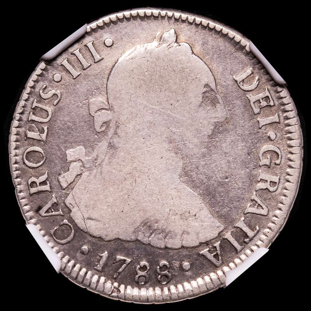 CHILE. 2 Reales, 1788-04 DA. Ceca de Santiago. Carlos III. Encapsulada por NGC como VG Detalles–Limpiada.
