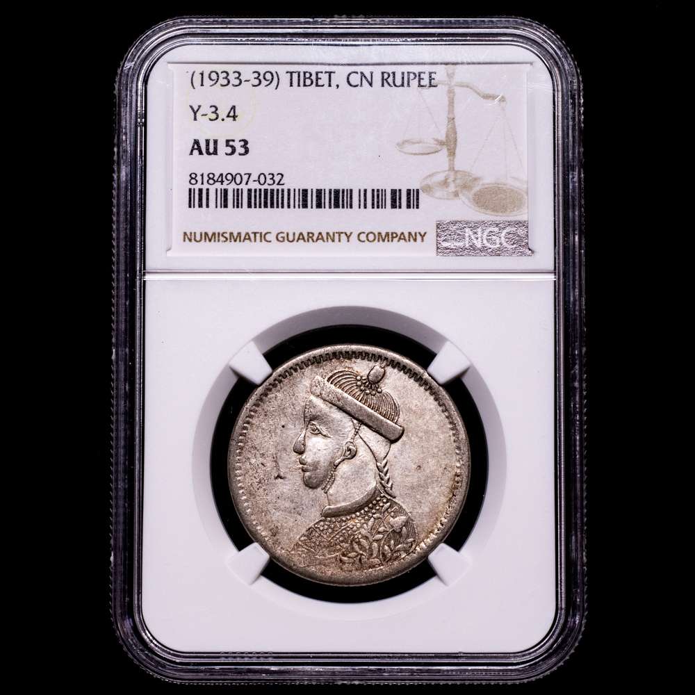 Numismática Barcala > Productos > China Tibet Ganden Phodrang 1933 – 1939 1 Rupia – A nombre de Guangxu (“Rupia de Szechuan”; plata) Plata 11,4g Encapsulado por NGC como AU 53 Y 3,4.