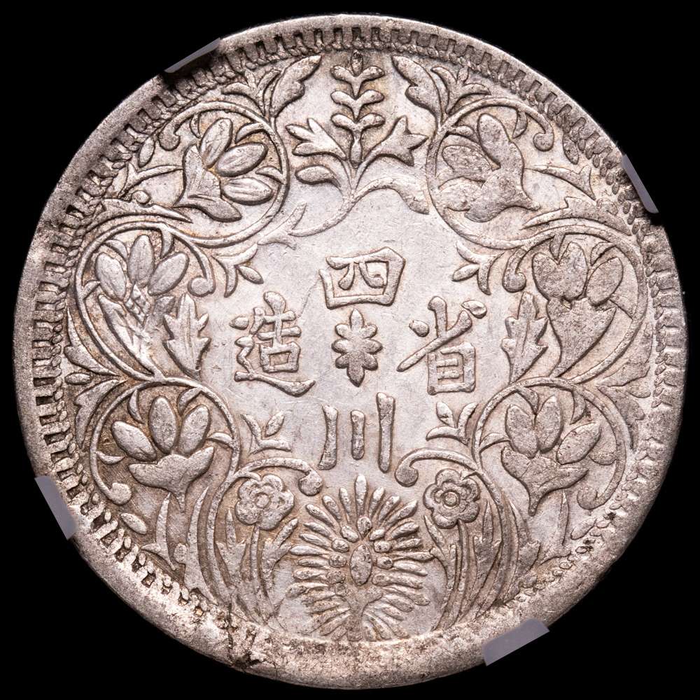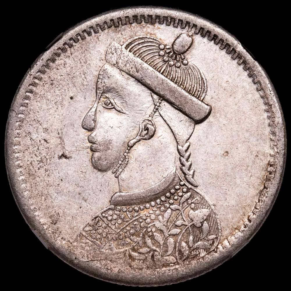 China Tibet Ganden Phodrang 1933 – 1939 1 Rupia – A nombre de Guangxu (“Rupia de Szechuan”; plata) Plata 11,4g Encapsulado por NGC como AU 53 Y 3,4.