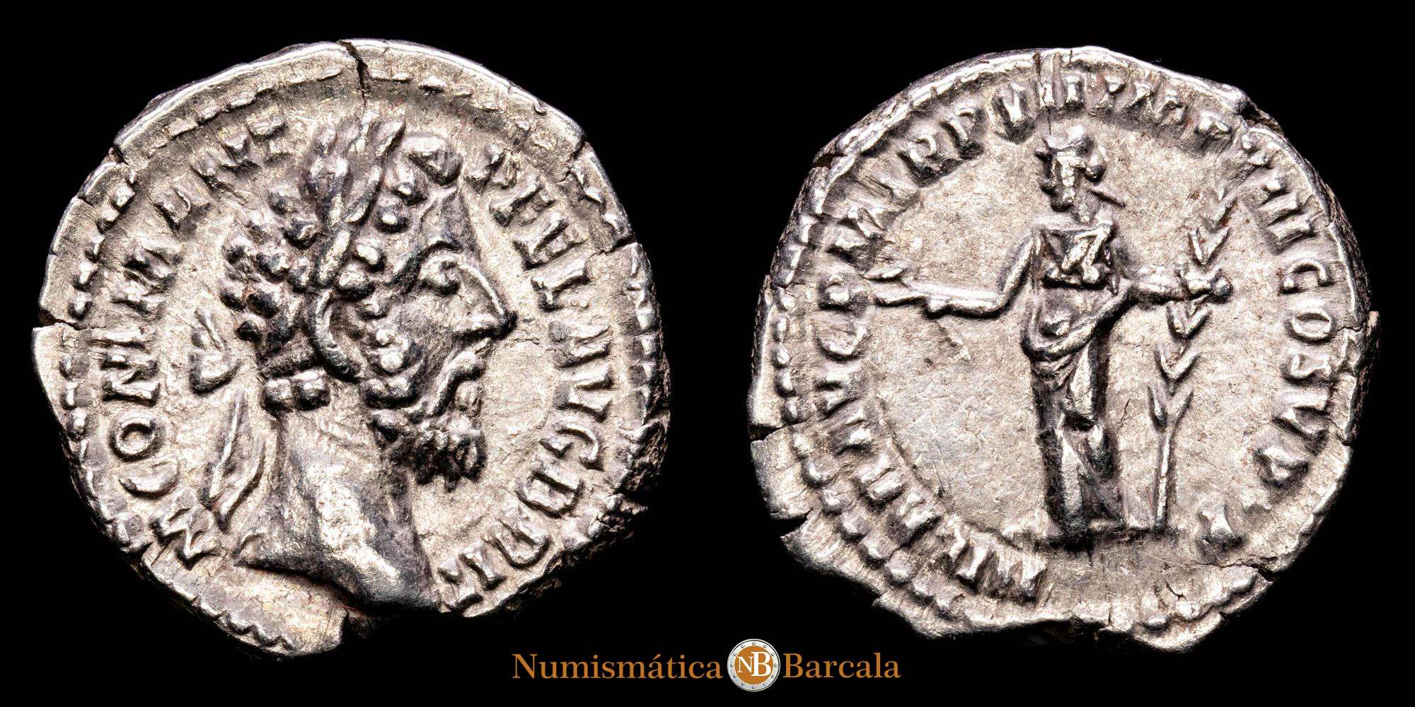 Anverso: M COMM ANT P FEL AVG BRIT, Cabeza laureada a la derecha.