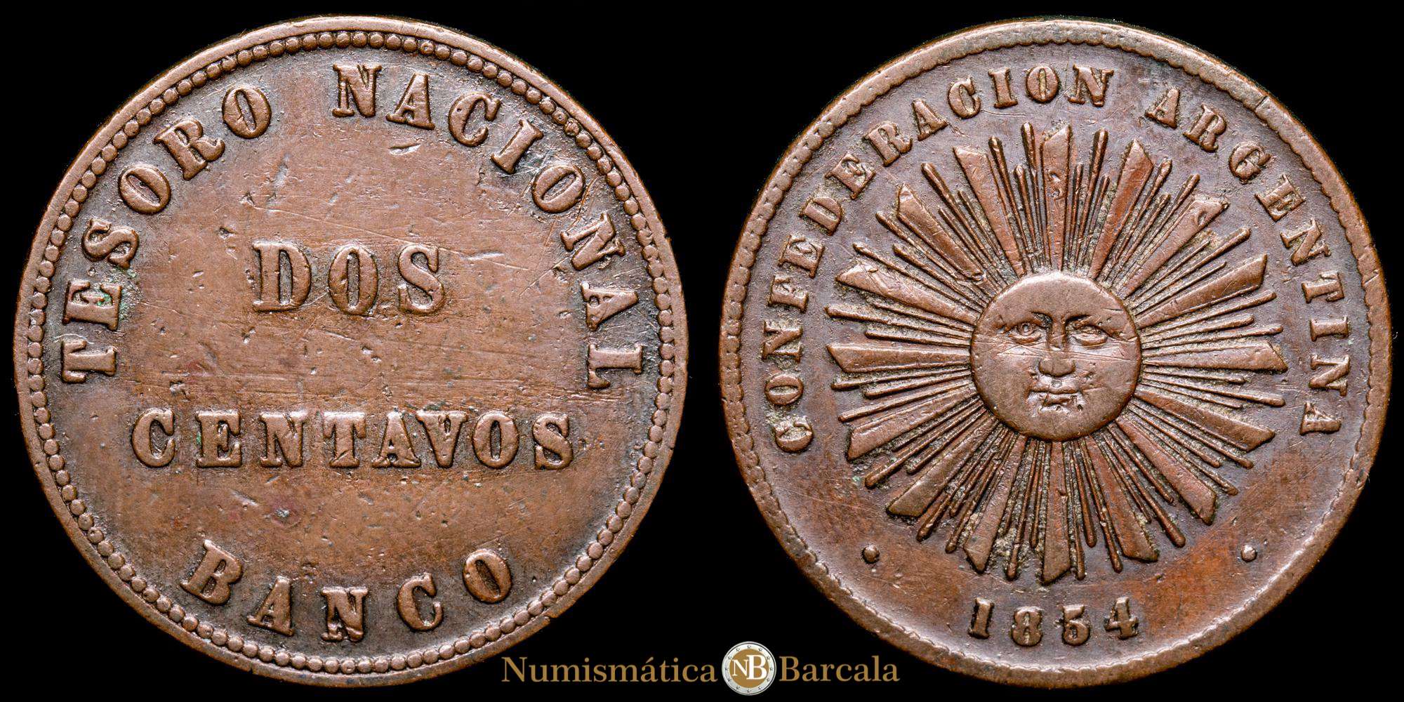 Numismática Barcala > Productos > Confederación de Argentina. 2 Centavos. (9,73 g.). 1854. KM-24. VF+.