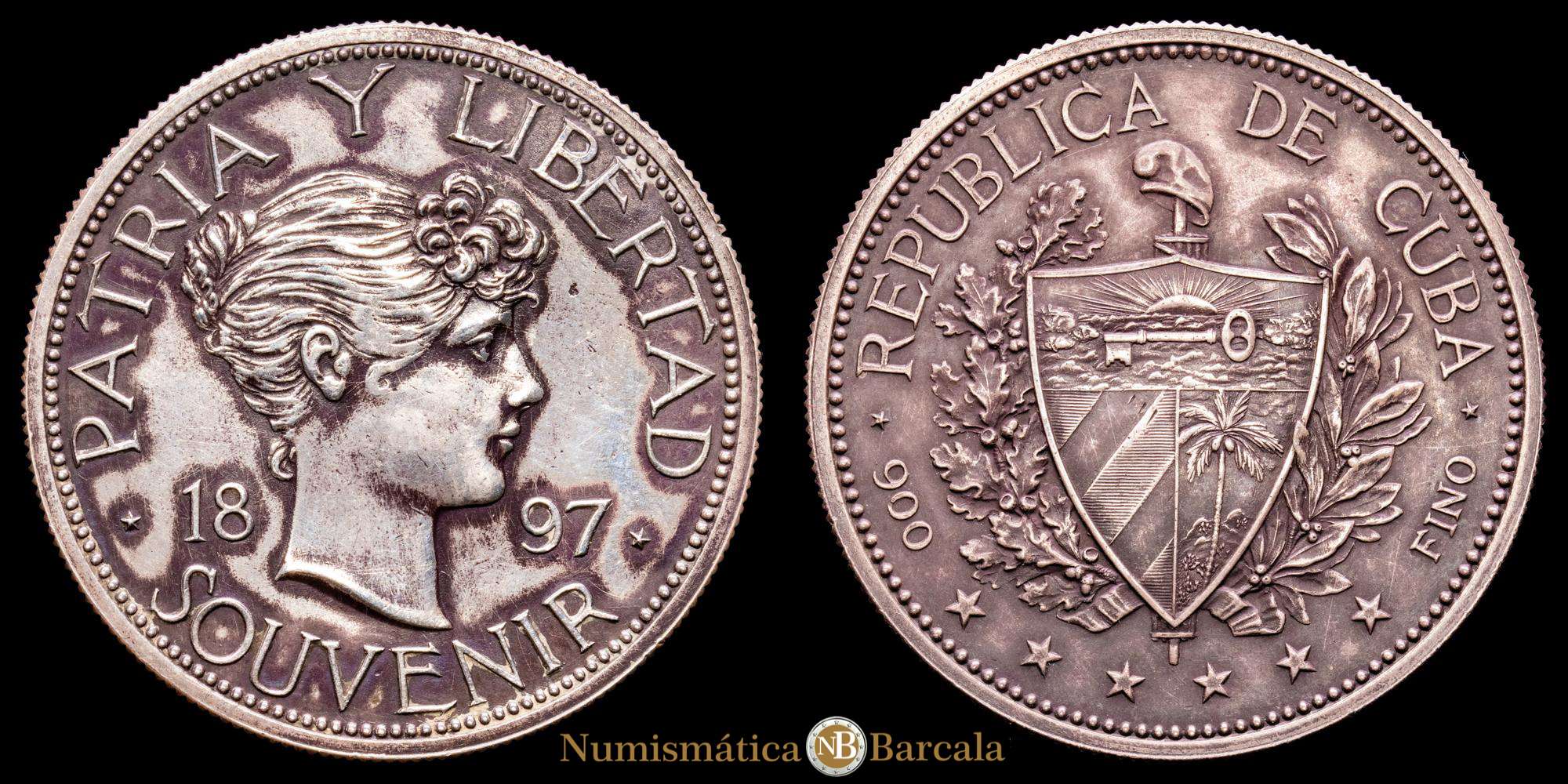Cuba. 1 Peso Souvenir. (22,44 g.). Cuba. 1897. KM-M2. XF. Bonita pátina. Anverso limpiado