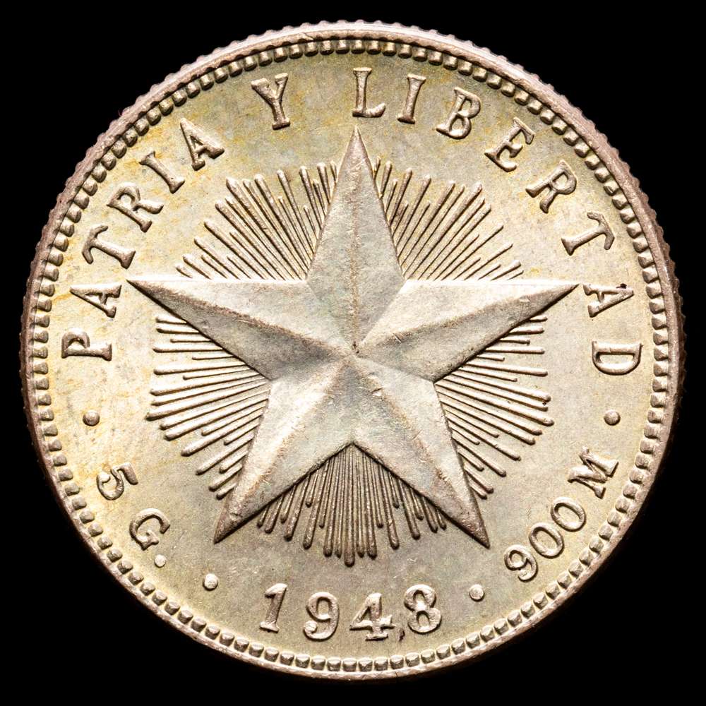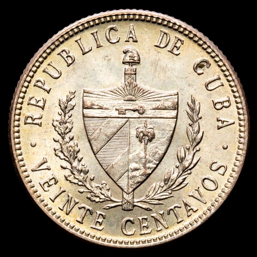 Cuba. 20 Centavos. (5,01 g.). Cuba. 1948. KM-13,2. UNC. Escasa así. Tono.