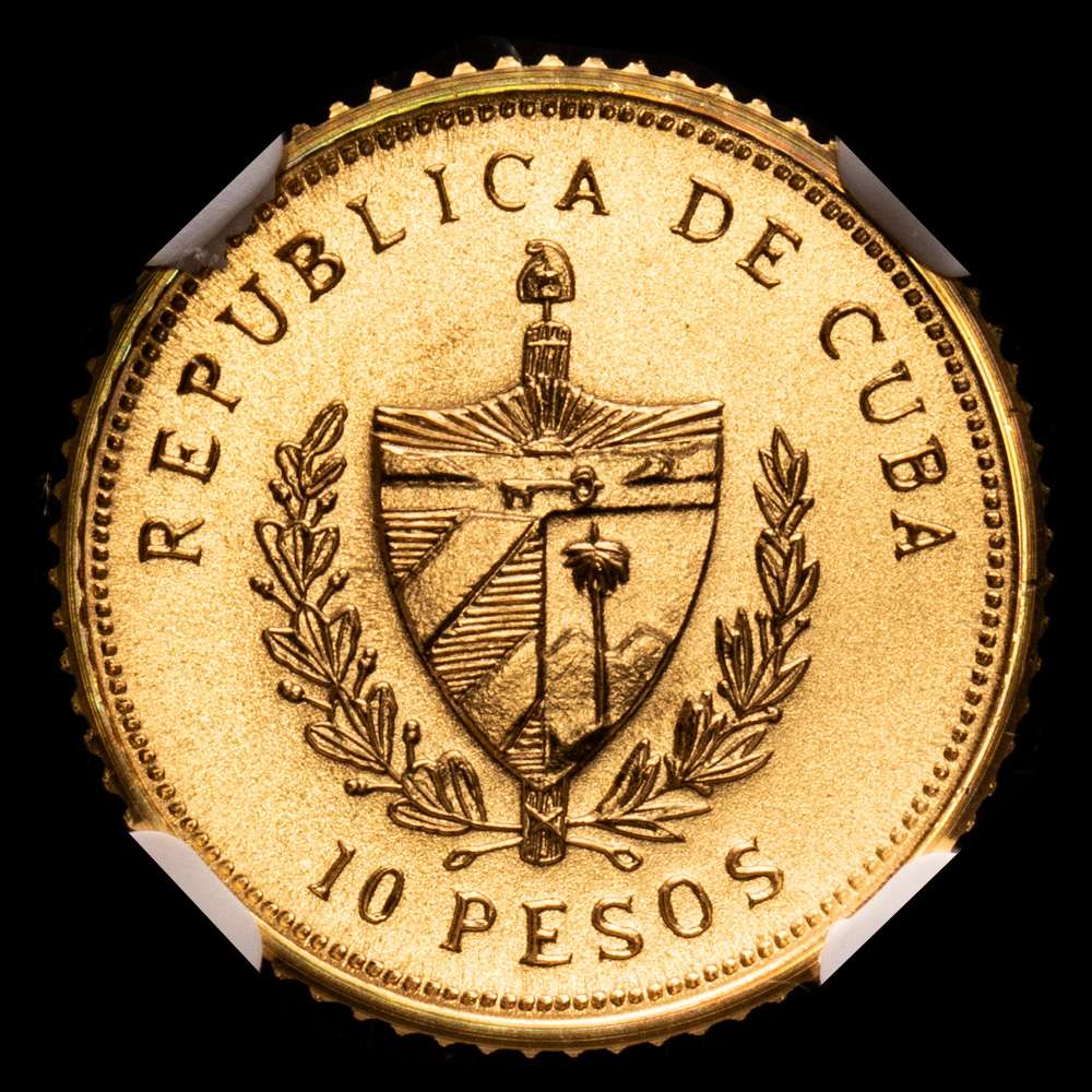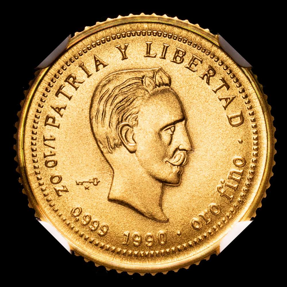 CUBA, Casa de la Moneda de La Habana, 10 pesos de oro, 1990, José Martí, NGC MS 69. KM-211. Superficies con acabado esmerilado prácticamente impecables, tirada reportada de solo 15 piezas.