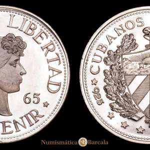 Cuba. Peso Souvenir. (29,6 g.). Cuba. 1965. Cubanos en el Exilio. Canto liso. BRUCE-XM5. PRUEBA.
