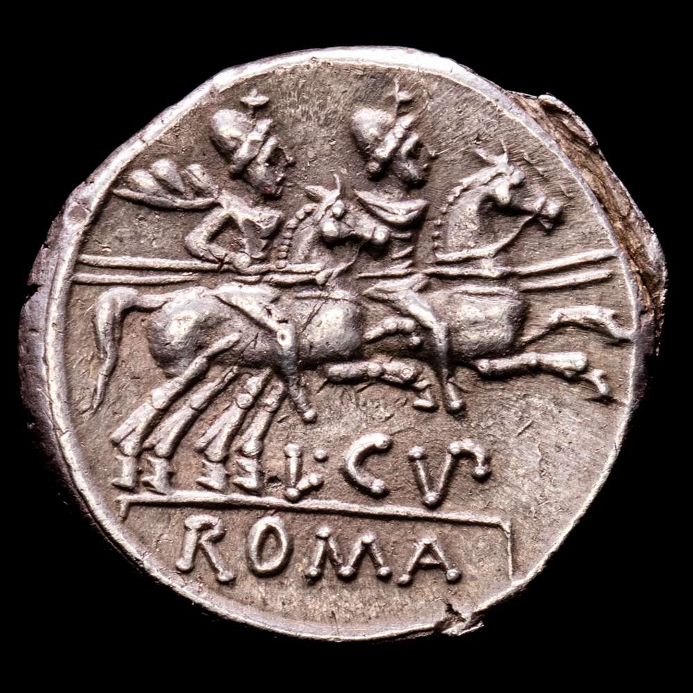 Numismática Barcala > Productos > Cupiennia. L. Cupiennio. Denario. 147 aC Roma. (FFc-665). (Craw-218/1). (Cal-530). Ag. 4,31 gramos. Pátina suave. XF.