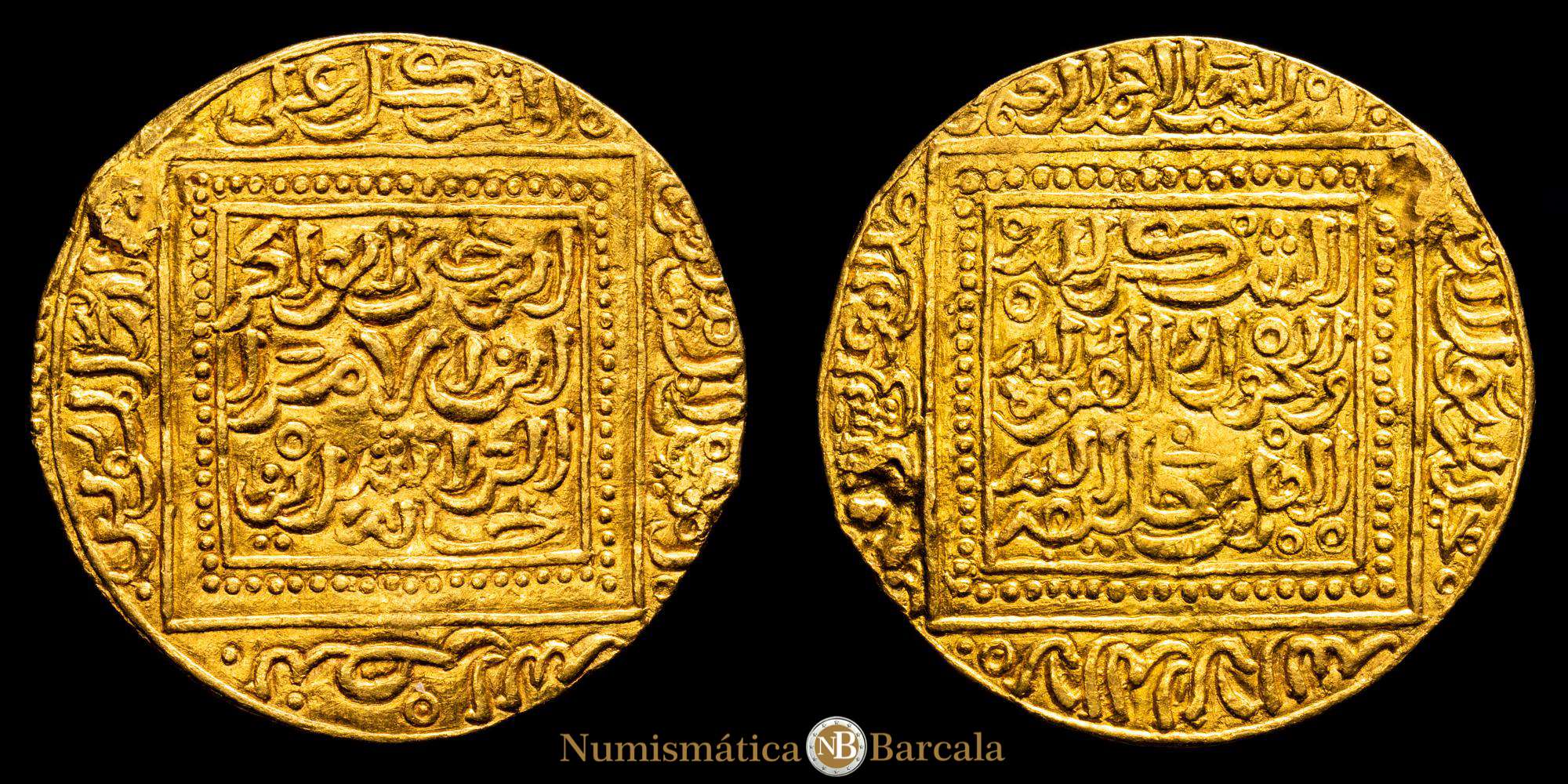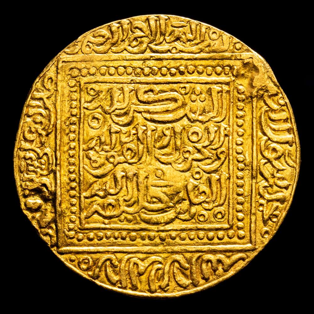 Numismática Barcala > Productos > Dinar hafsí islámico , Abu Yahya Abu Bakr II AV. Ceca incierta, acuñado después del 717 d. H. = 1317 d. C. Álbum 507.2; Hazard 589. 4,51 g, 27 mm, 12 h. Muy buena conservación. Raro.