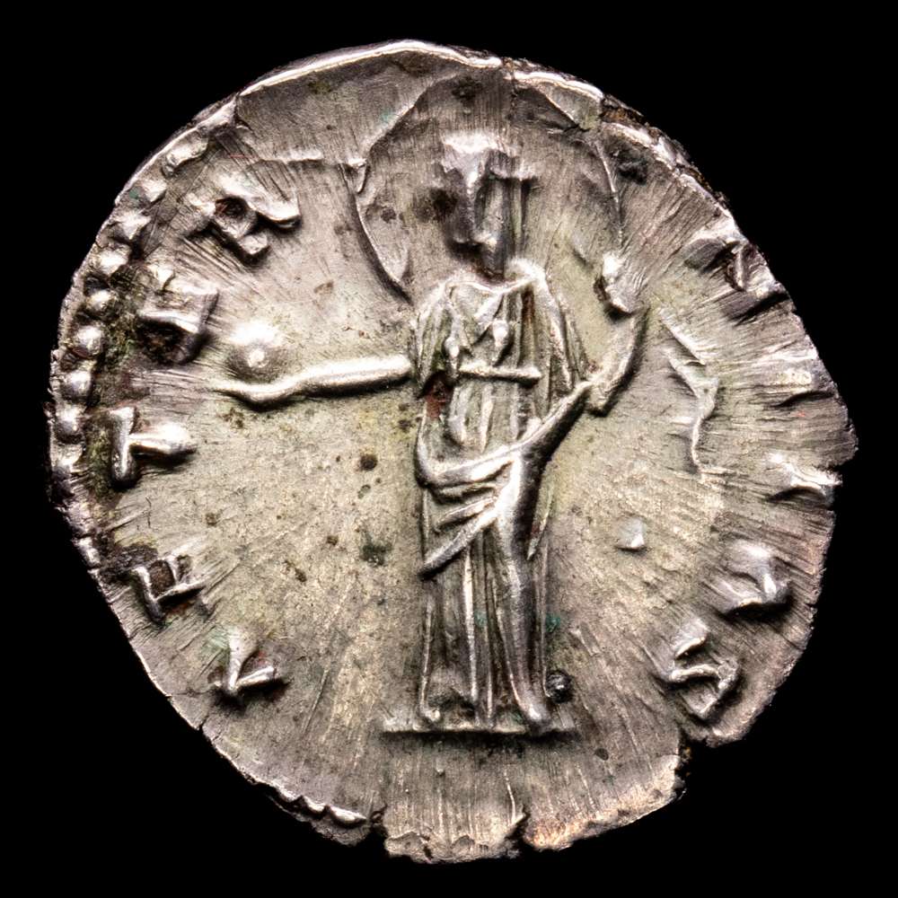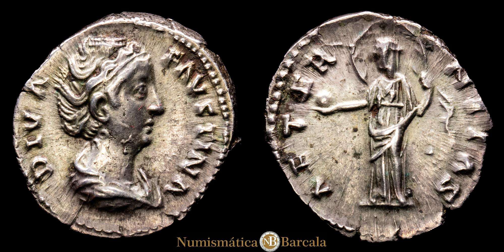 Numismática Barcala > Productos > DIVA FAUSTINA I (fallecida en 140/1). Denario. Roma. (19mm. 3,49 g.). Roma. 140-141 d.C.. RIC-351. En excelente estado de conservación.