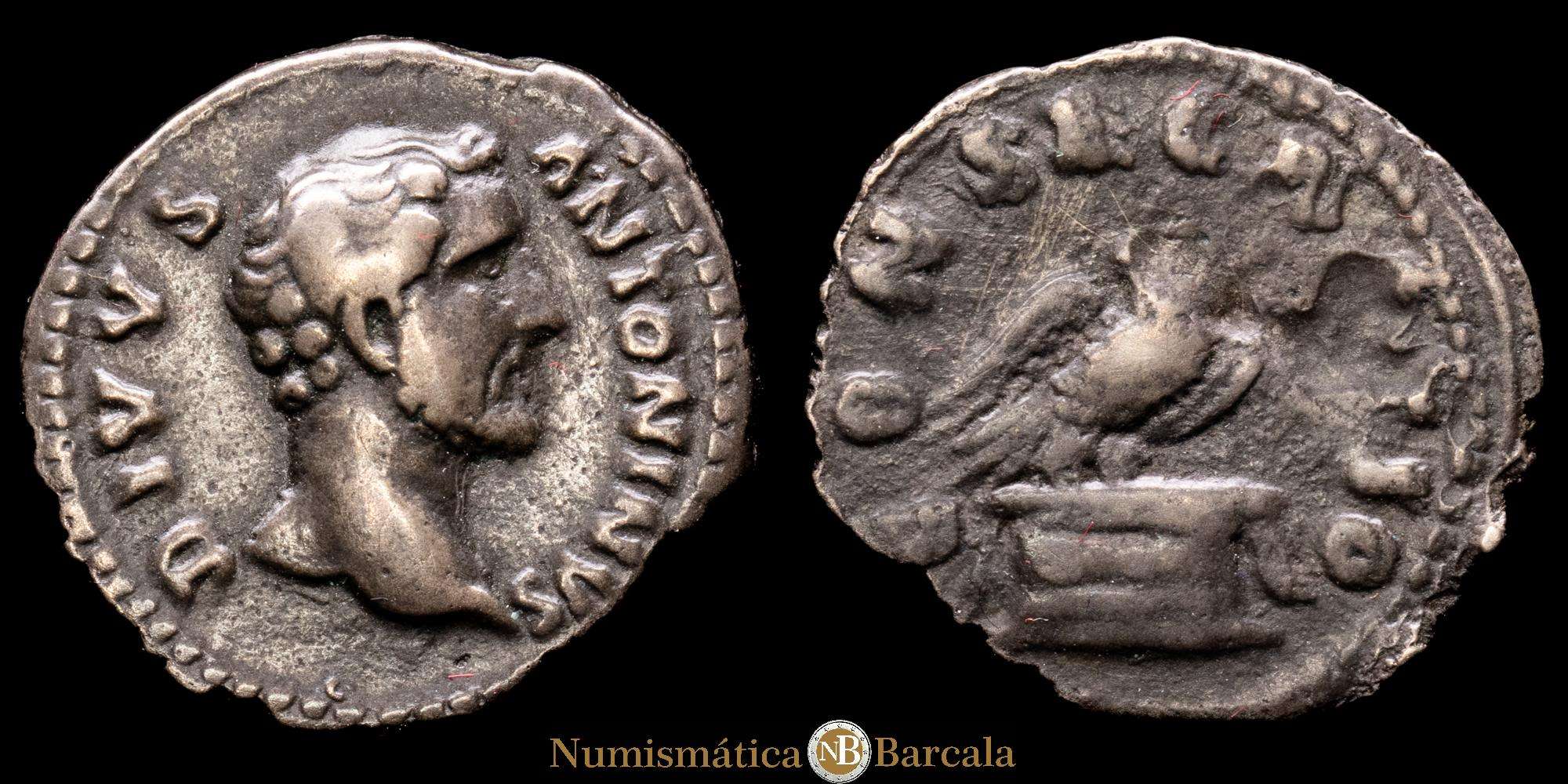 Numismática Barcala > Productos > Divo Antonino Pío. Denario. (2,86 g.). Roma. 161 d.C. (Ric-III 431). (Bmcre-48). Ag. 2,86 gramos. MBC-.