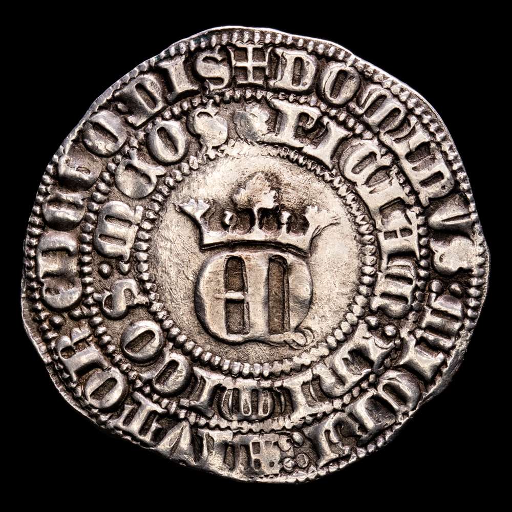 Enrique II (1368-1379). Sevilla. Real. (AB.406). 3,47 gramos. Ex Colección Manuela Etcheverría. MBC+.
