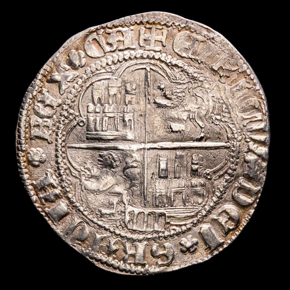 Numismática Barcala > Productos > Enrique IV(1454-1474). Segovia. Real de busto. (AB. 691 var). 3,42 gramos. Acueducto de cuatro arcos flanqueado por roeles. Leones sin corona. Bonita pátina. Rara. MBC+.