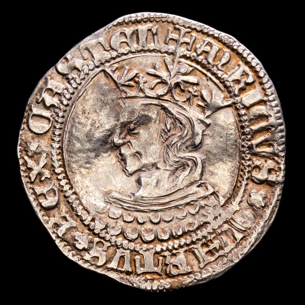 Enrique IV (1454-1474). Sevilla. Real de busto. (Imperatrix E4:9.31, mismo ejemplar) (AB. 685). Bella. Muy escasa así. 3,33 g. EBC/EBC-.