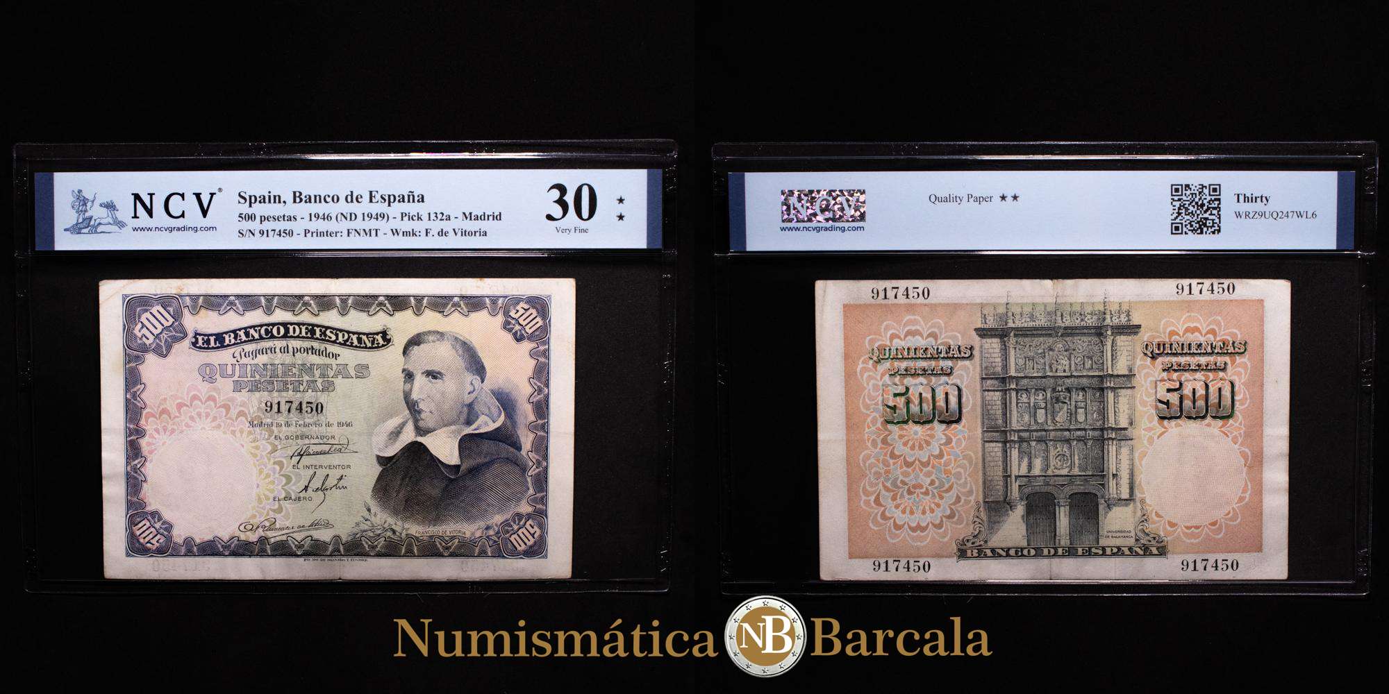 España – Banco de España. 500 Pesetas. Madrid. 1946 (ND 1949). FNMT. Pick 132a. 30 Very Fine. Quality Paper**