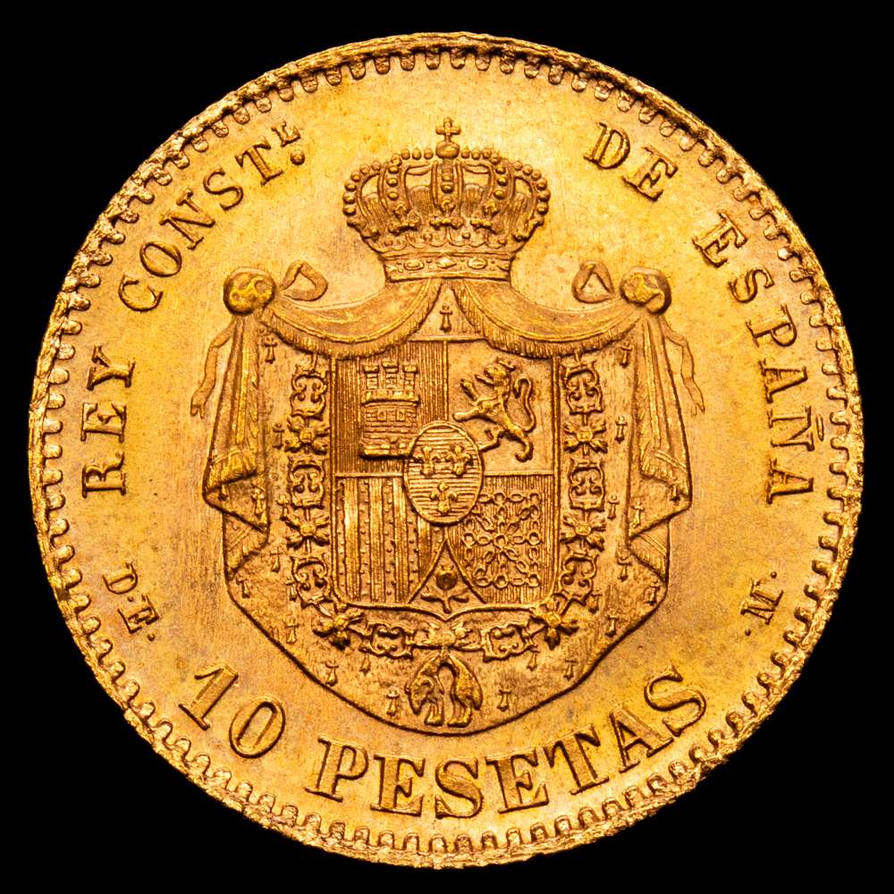 Estado Español (1936-1975). 10 pesetas. 1878*19-62. Madrid. DEM. (Cal-168). Au. 3,23 gramos. Reacuñación oficial. Brillo original. EBC+.