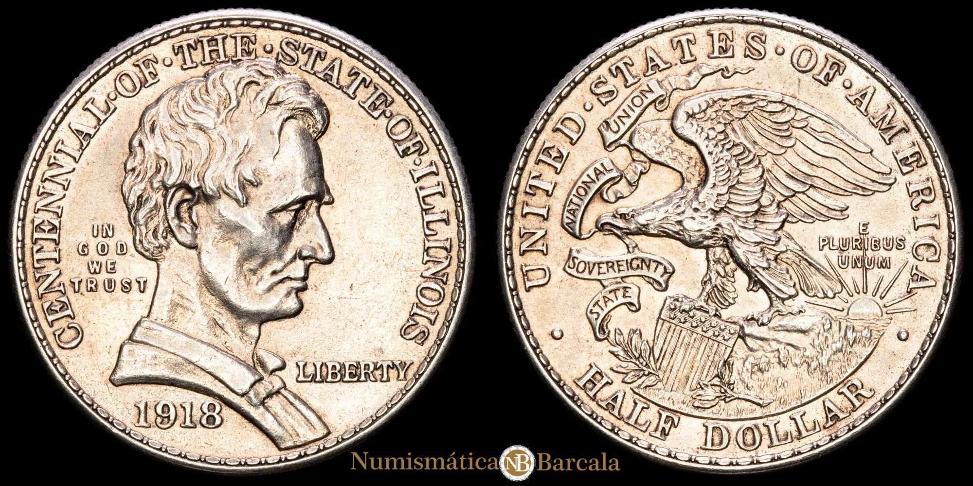 Numismática Barcala > Productos > Estados Unidos. 1/2 Dolar (12,48 g.). Illinois. 1918. KM-143. XF.