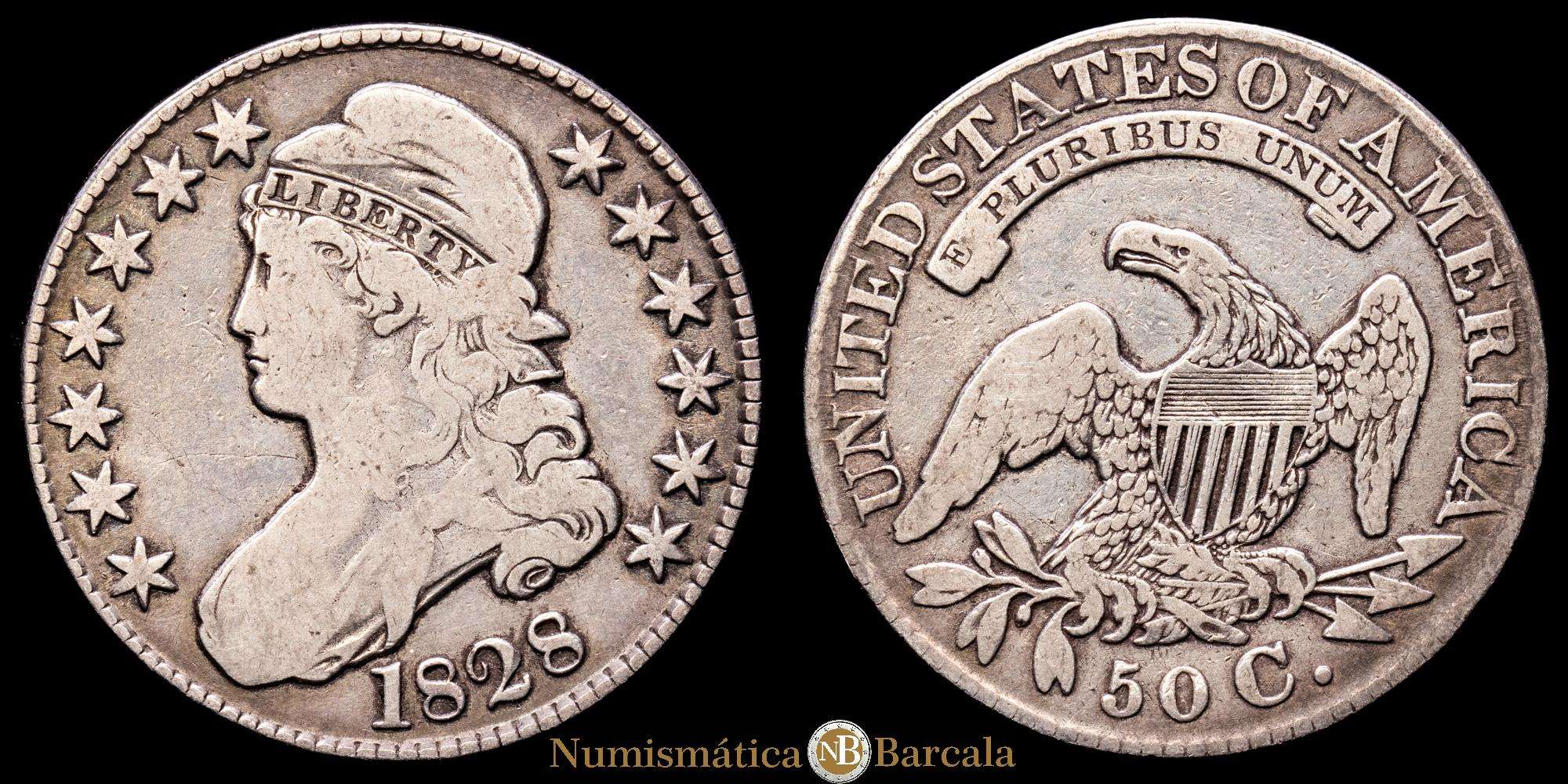Estados Unidos. 1/2 Dólar. 1828. Philadelphia. AR. (13,05 g.). Capped Bust. KM-37. VF.