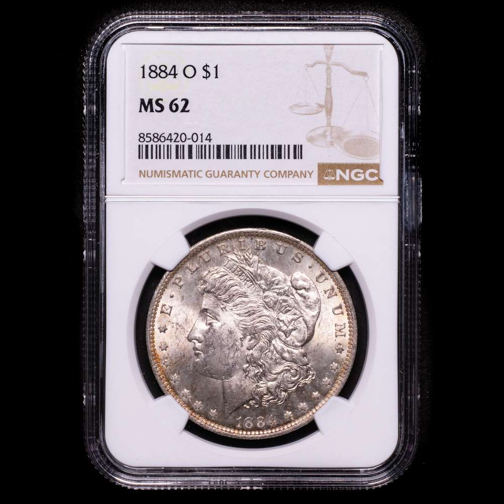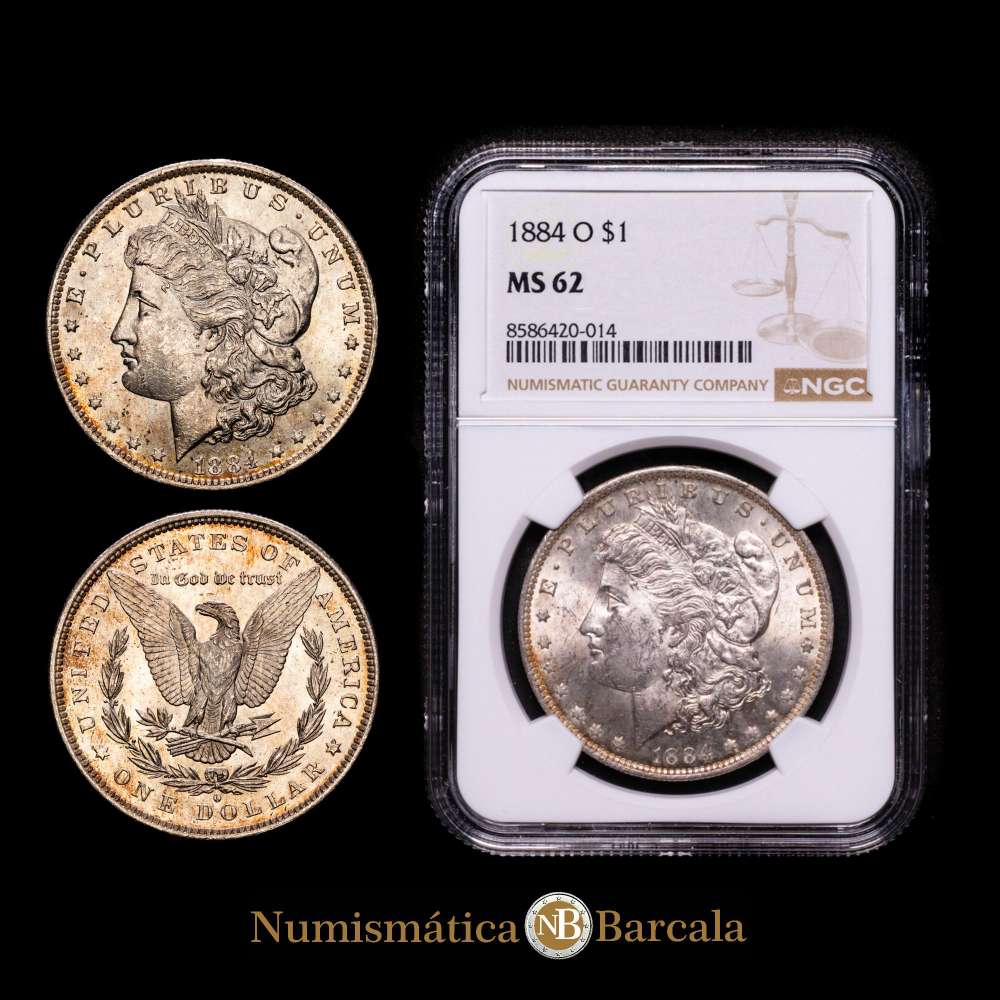 Numismática Barcala > Productos > ESTADOS UNIDOS. 1 dólar. (Ar. 27,00g/38mm)*. 1884. Nueva Orleans. (Km-110). Encapsulado por NGC MS 62. Bella pátina.